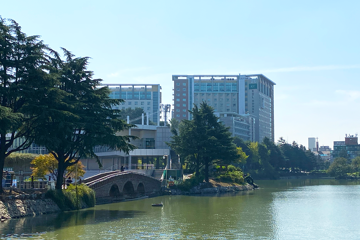 Үндсэн хаалгаар ороод зүүн талд өндөр, том Konkuk University Medical Center байдаг.
