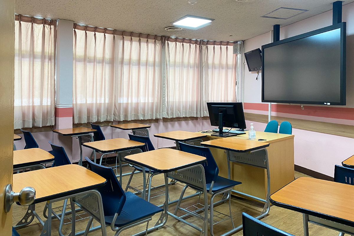 Зүүн талд байгаа хаалгыг хараад эргэн орвол хэлний сургуулийн ангийг харж болно! Ихэнх ангиуд 2-оос 4 давхарт байрладаг.