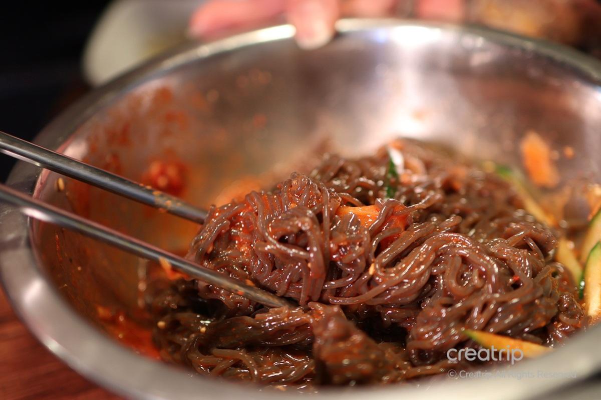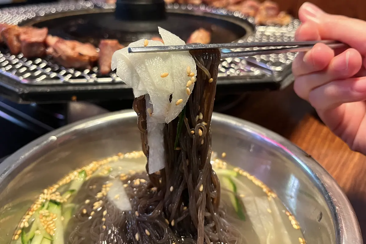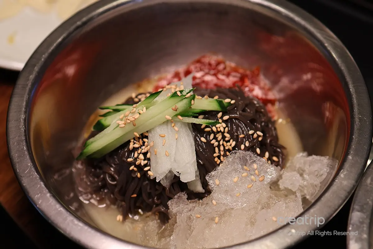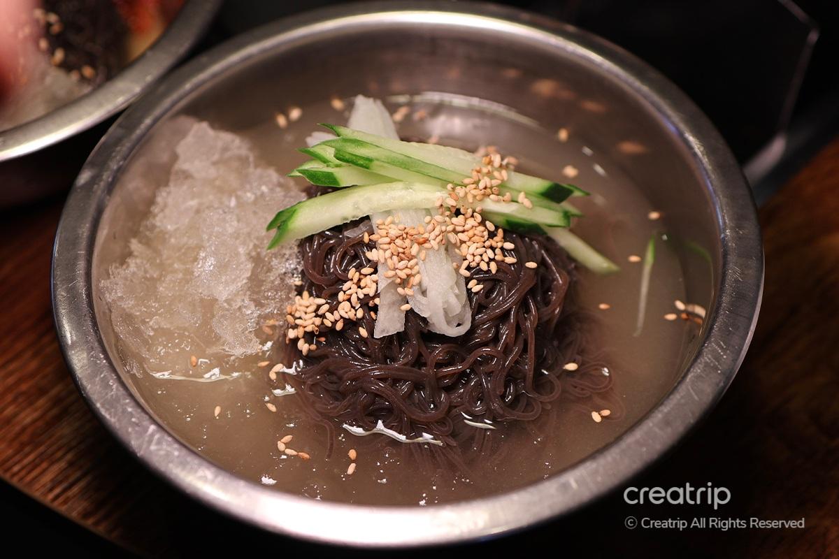 Сэргээгч, амттай хүйтэн гоймонгийн хоол захиалсан нь махтай төгс зохицоно.Mul Naengmyeon, Bibim Naengmyeon Эдгээр хоёр төрлийн хоол байгаа тул та өөрийн хүссэнээр захиалж болно.