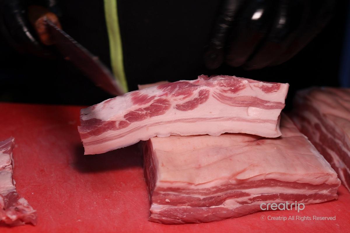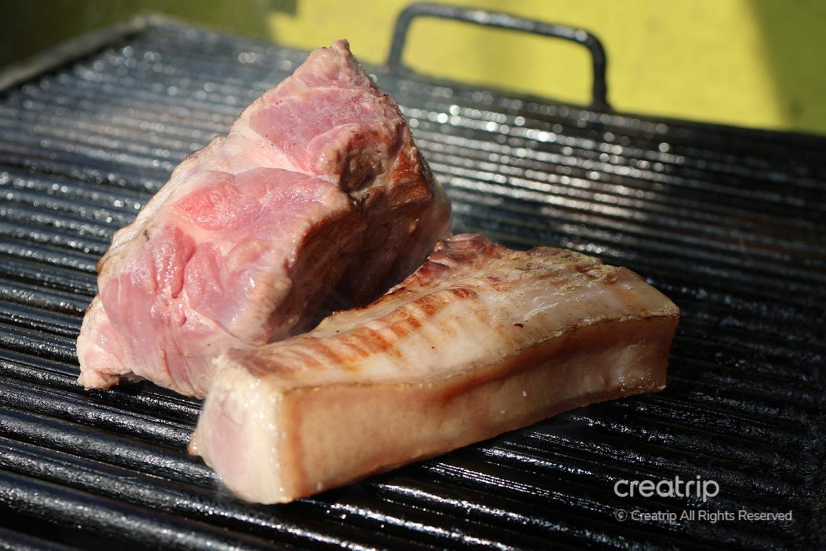 Тэд захиалга өгсний дараа махыг нүүрсэн дээр шарна.Амттай гахайн махыг нууц нь нүүрсэн дээр шарж, гахайн махны гадаргуугаас бага зэрэг нүүрсний үнэр гарах явдал юм!