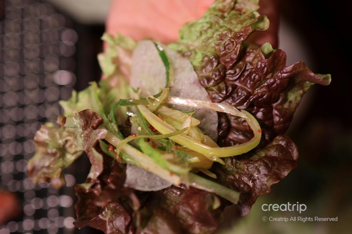 Махыг илүү амттай идэх арга, би танд хэрхэн боож идэхийг харуулах болно!Цагаан сонгино, ссамжанг, кимчи гэх мэт өөрийн сонголтоор шинэ ногоон навчин дээр тавиад тусгай соусанд дүрсэн махаа ногоон навчин дээр тавиад ссамжанд дүрсэн сармисыг дээр нь тавина. Ногоон навчийг дугуйруулан боож, нэг амттай боовноос ам руугаа хийнэ! Ийм маягаар та илүү баялаг амтыг мэдрэх болно.