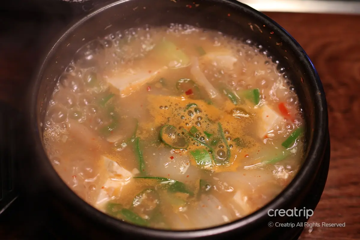 Кимчи шөл болон шар буурцгийн оо шөлийг гахайн мах, будаатай хамт туршаарай! Шөл нь зүрхэндээ хоол нэмэхэд гэдэс тань бат бэх дүүрэх болно. Гахайн Кимчи Шөлд маш их байцаа кимчи ордог бөгөөд энэ нь гүн амтыг өгч, дахин дахин идэх хүсэл төрүүлдэг. Дэнжанг жигээ нь тааламжтай, цэвэр амттай байсан.