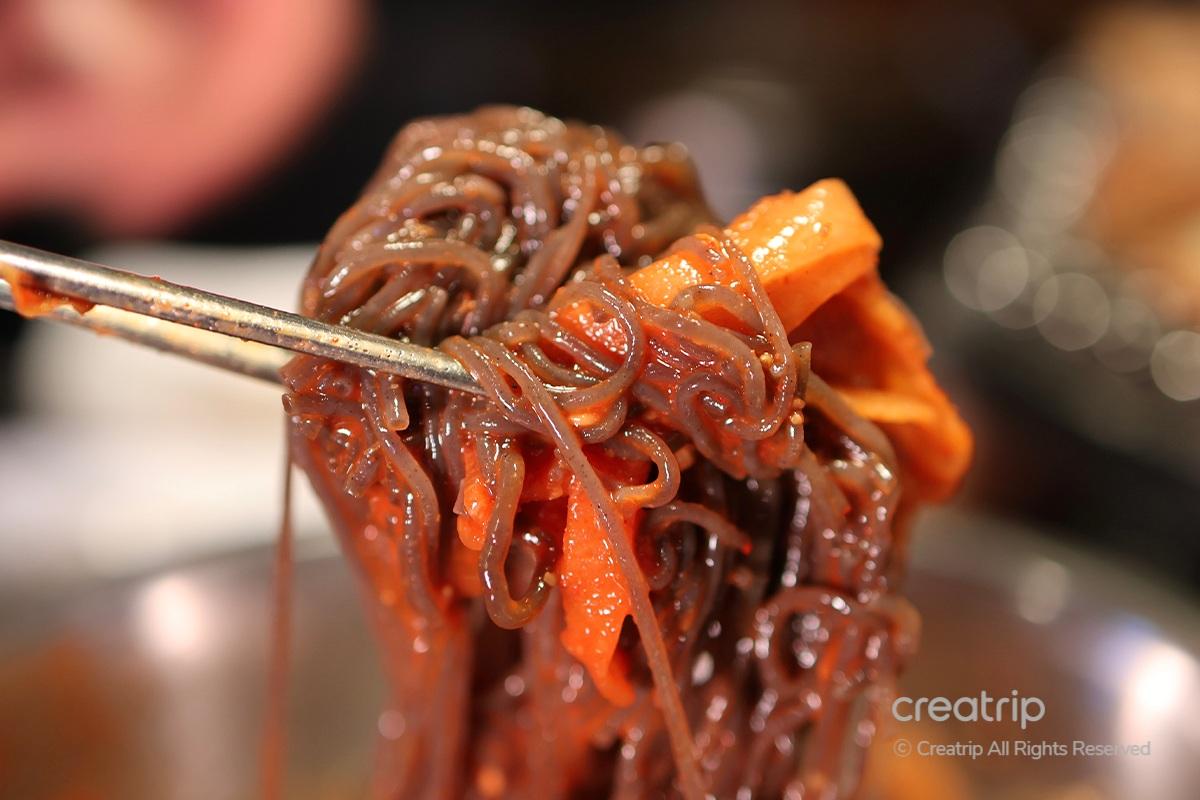 Наенгмён дотор нь цуу, өргөст хэмх, бага зэрэг цуу, васаби амттай байдаг тул махны тослог амт мэдрэгдэхгүй болдог.Бибим наенгмён дотор нь цуу, өргөст хэмх байдаг бөгөөд нутгийн хүмүүсийн хэлснээр амтлагч нь тийм ч хурц биш байдаг. Наенгмён болон махыг хамт идэхэд үнэхээр амттай байдаг тул нэг удаа туршаад үзээрэй!