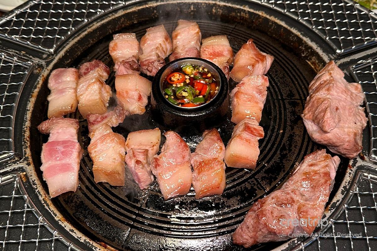 Chobeol үхрийн хавирга болон гахайн хэвлий ирлээ!Одоо бид махаа жинхэнэ утгаар нь шарах гэж байна, ажилчид бүх махыг бидний төлөө шарах тул бид хоолоо тухтай идэж болно.