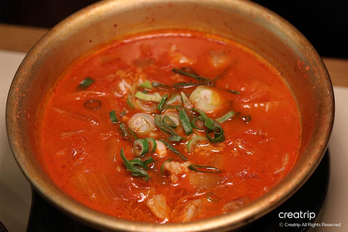 Мэдээж мах идэхдээ шөлийг орхиж болохгүй шүү дээ, тийм биз дээ? Бид хар гахайн кимчиний шөл захиалсан бөгөөд энэ нь хар гахайн махаар дүүрэн, гүнзгий шөлтэй кимчиний шөлийн амтыг мэдрэх болно.