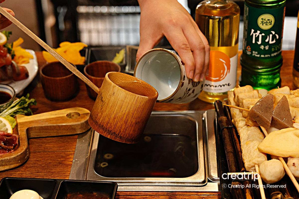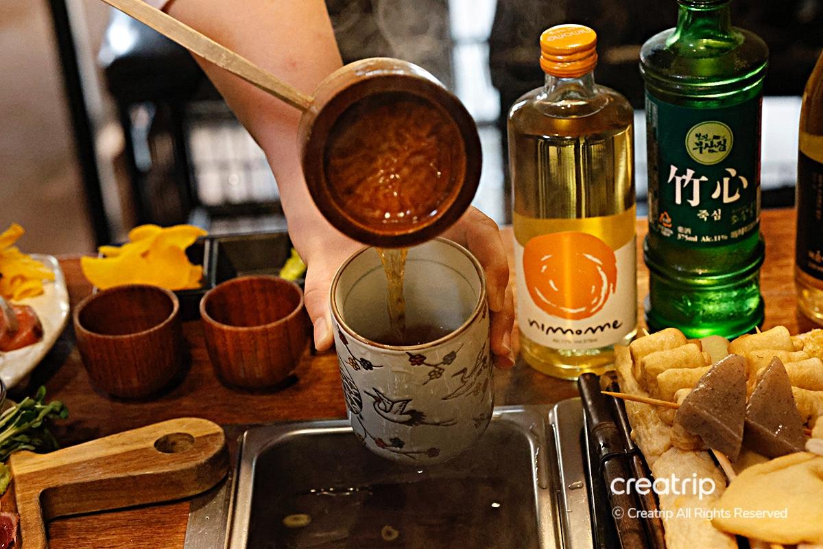 Изакая цэс нь маш амттай тул уух хэрэгтэй боллоо! Эзэн надад зөвлөсөн ундаа нь уламжлалт архи болох Даэтонжу юм. Хулс хэлбэртэй, модон аяга маш өхөөрдөм байсан. Архийг бүх хачиртай сайхан хослуулдаг.