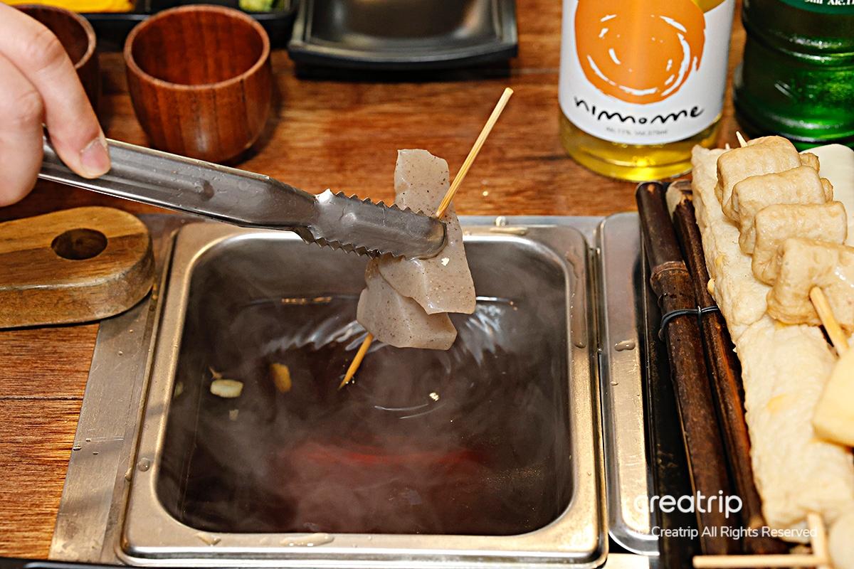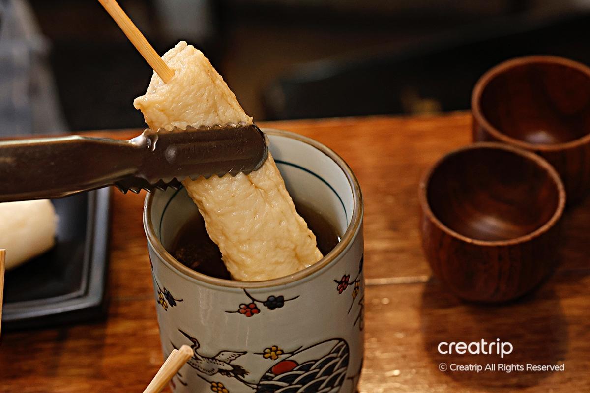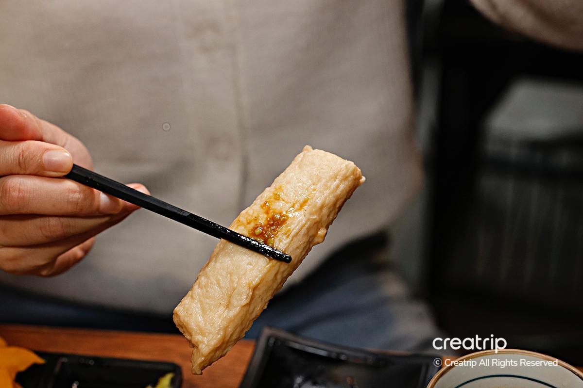 Энэ газар болон бусад изакая бааруудын хамгийн том ялгаа нь ширээний голд загасан кекс шөл байдаг. Редактор энэ удаад дөрвөн хоол захиалсан: 2 тусгай загасан кекс, үхрийн махан татаяки, ясгүй тахианы караагэ, болон хөгшин яргай загасны сашими.