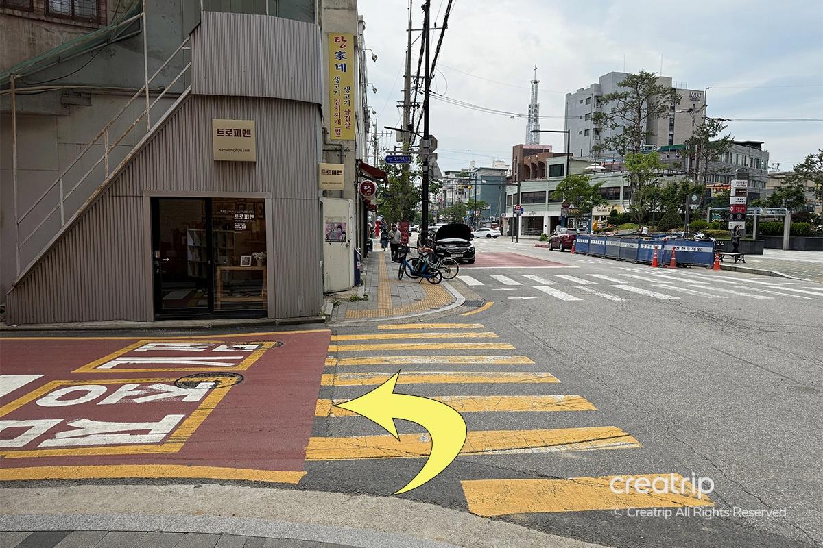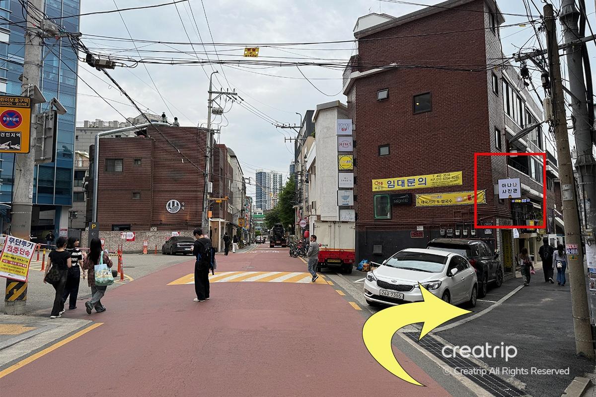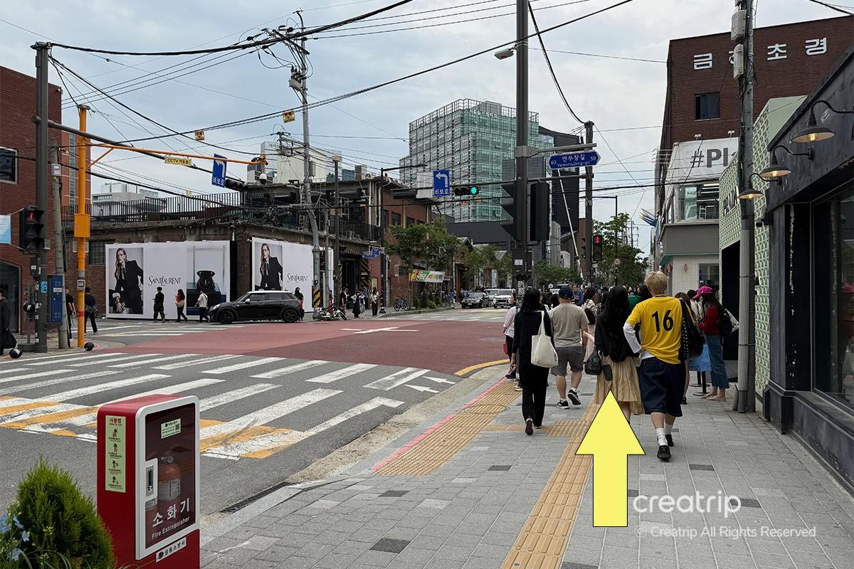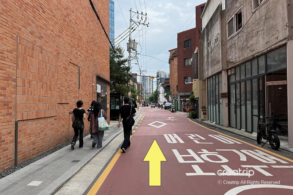 'AnanaStudio Seongsu' гэсэн тэмдэгийг харах хүртэл шулуун яваад, дараа нь баруун эргэнэ.