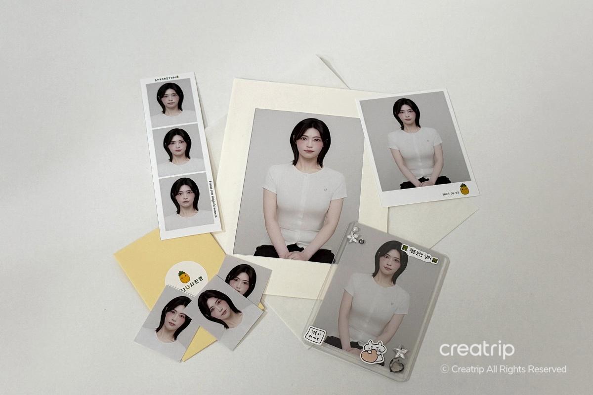Хувийн үнэмлэхний хэмжээтэй хэвлэгдсэн зургаан зурагнаас гурвыг нь жирийн үнэмлэхний зураг шиг хайчилж, нөгөө гурвыг нь 'Insaengnecut' хэв маягаар тэр чигт нь өгсөн.