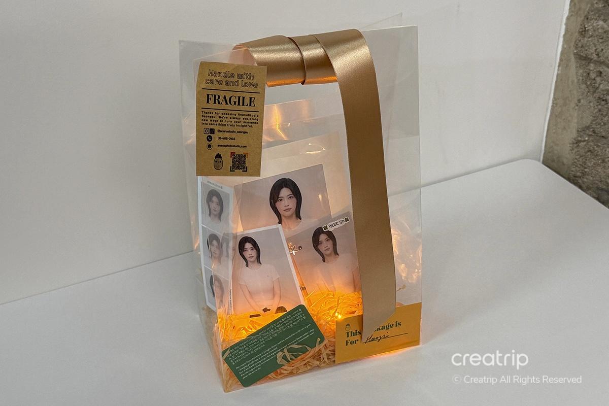 Энэхүү багцын онцлог болон 'Anana Photo Studio'-ийн таних тэмдэг нь гэрэлтэгч уутанд боож өгдөг явдал юм,