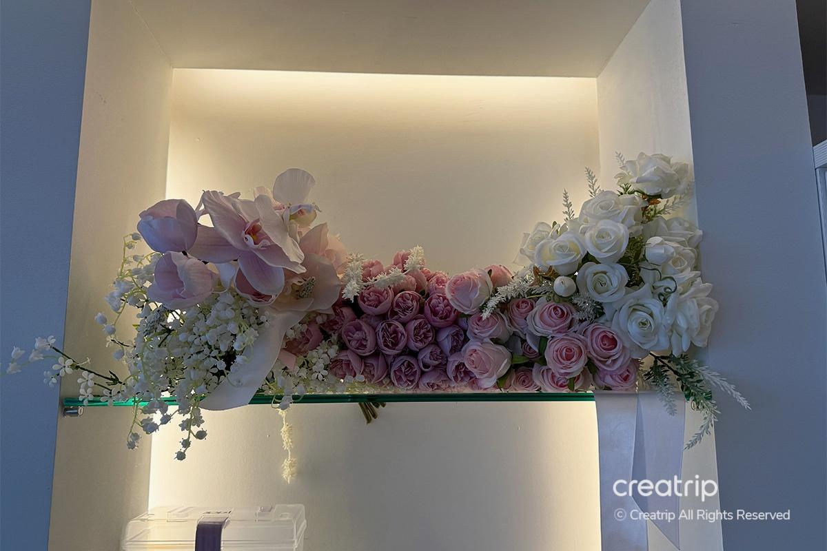 Орчин даяар мэдрэмж дүүрэн цэцэгс болон цагаан цэвэрхэн засал чимэглэлүүд хосолсон бөгөөд бүхэл бүтэн гэрэл зургийн студи дулаахан, тав тухтай уур амьсгалаар дүүрэн байна.