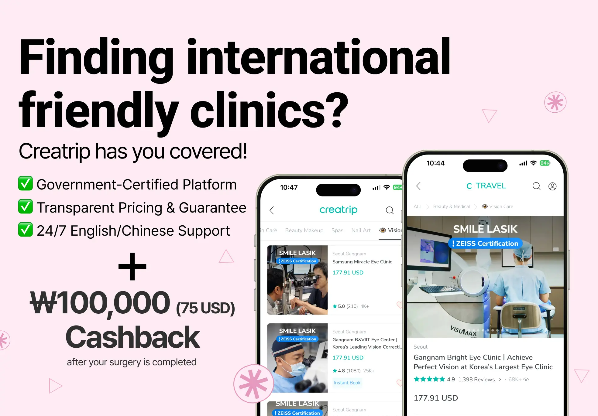 Хэрэв та найдвартай LASIK клиник хайж байгаа бол Creatrip-аар захиалга хийхийг би үнэн сэтгэлээсээ санал болгож байна. Мөн энэ зөвхөн би энд ажилладаг гэдгээрээ биш! Энэ платформ нь жинхэнээрээ гадаад зочдод зориулан бүтээгдсэн байна.