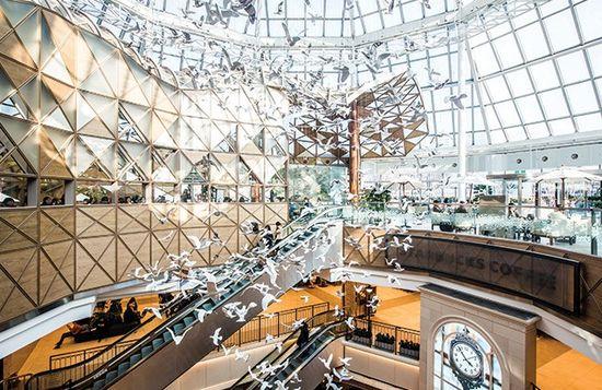 Цэвэрхэн зүсэлттэй дотоод засал нь их дэлгүүр шиг бөгөөд, газар доорх худалдааны төвөөс ялгаатай нь тэдэнд илүү алдартай брэндүүд байдаг.