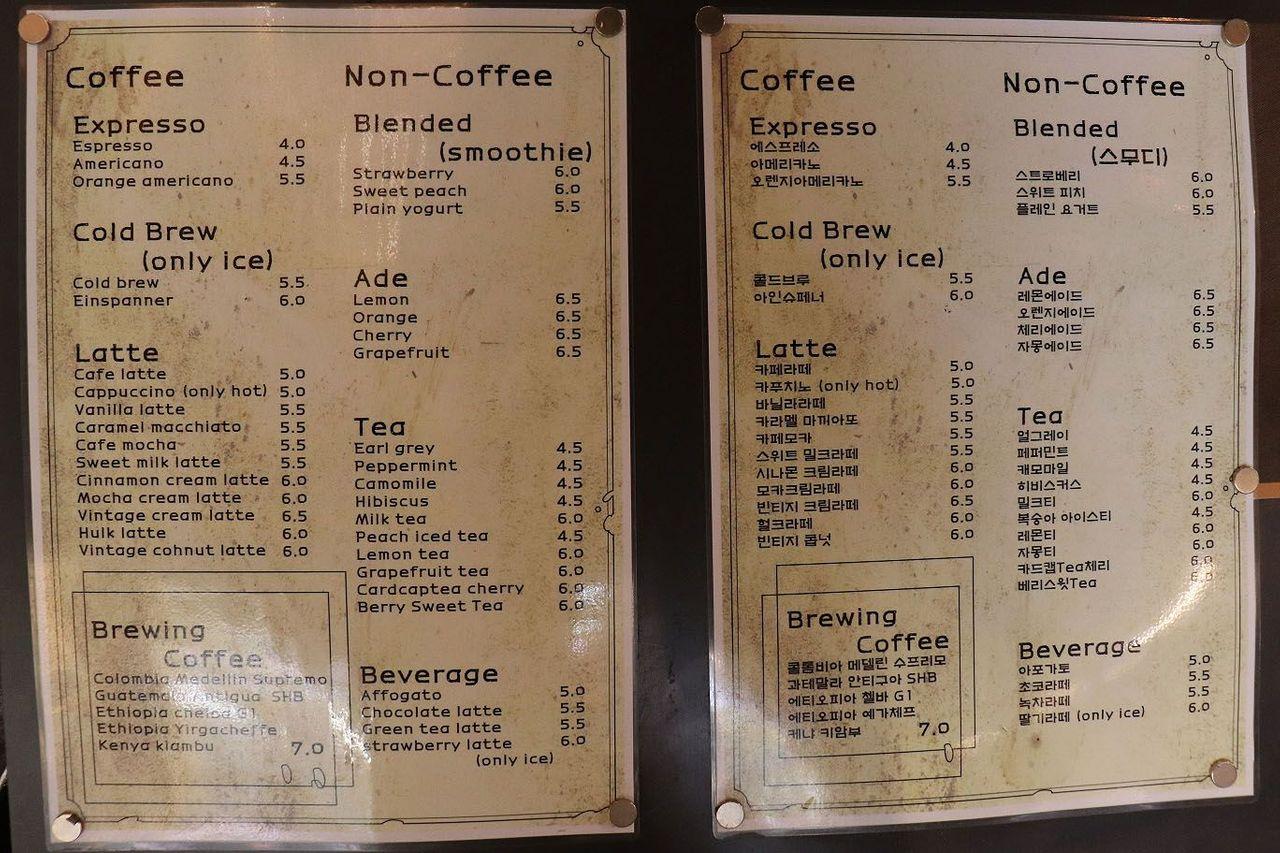 | Винтаж Крем Латте | 빈티지 크림라떼 | ₩6,500 |