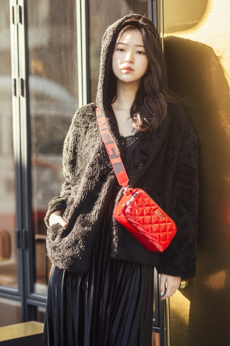 'Kim Hye-yoon', тусгай сэтгэлтэй хүн гэж танигдсан 'Extraordinary You' дэх 'Son Dam-bi', 'When the Camellia Blooms' дээр хамгийн шинэ үеийн киночин болсон, цэцэгтэй хаалган хэвлэсэн flap panini сумктай оролцлоо.