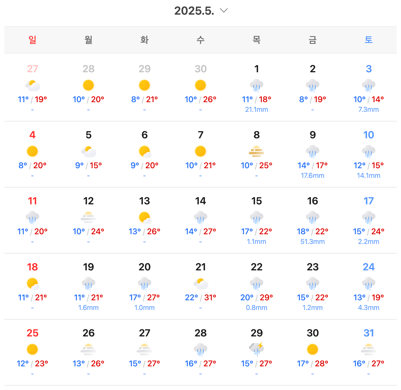 Тийм ээ, Korea-н цаг агаар хурдан өөрчлөгдөнө, ялангуяа Spring ба Fall үед, тиймээс аялалдаа явахын өмнө урьдчилсан цаг агаарын мэдээг шалгахыг их зөвлөж байна.