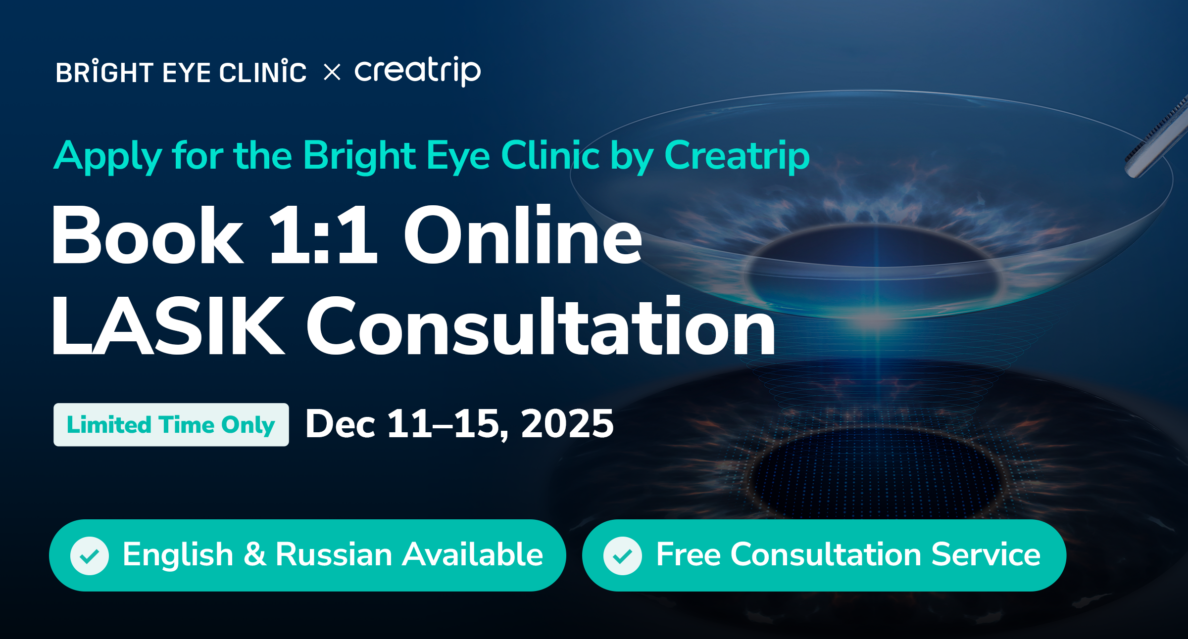 2025 оны 12-р сарын 11-ээс 15-ны хооронд, Bright Eye Clinic X Creatrip 24 цагийн онлайн зөвлөгөөг санал болгоно. Бүх олон улсын үйлчлүүлэгчдийг Bright Eye Clinic-ийн англи эсвэл орос хэлтэй мэргэжлийн эмнэлгийн багтай нэг бүрчилсэн зөвлөгөөнд урьж байна! Та LASIK мэс засалтай холбоотой төрөл, үнэ болон Солонгост LASIK-ийн онцлогууд зэрэг аливаа асуултад хариултыг гэрээсээ тухтай, мэргэжлийн түвшинд авна — Солонгост биечлэн ирэх шаардлагагүй.
