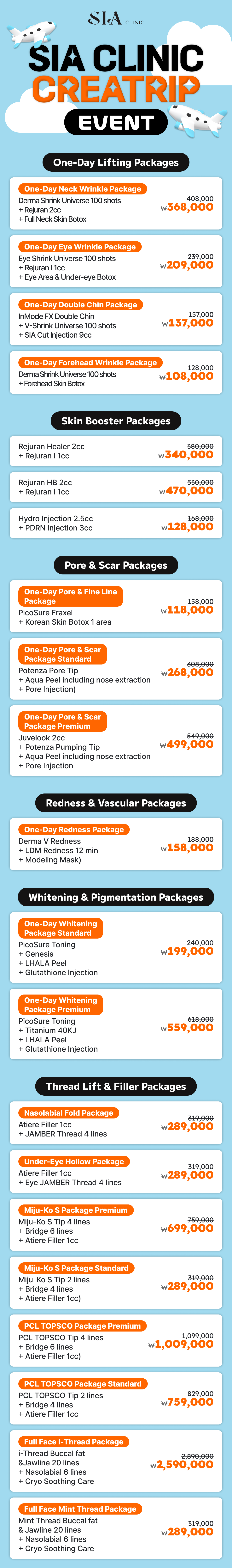 • Клиник нь гадаад өвчтөнд нэг өдөрт хэд хэдэн процедурыг хийлгэх боломж олгодог Creatrip-онцгой багцыг санал болгодог.