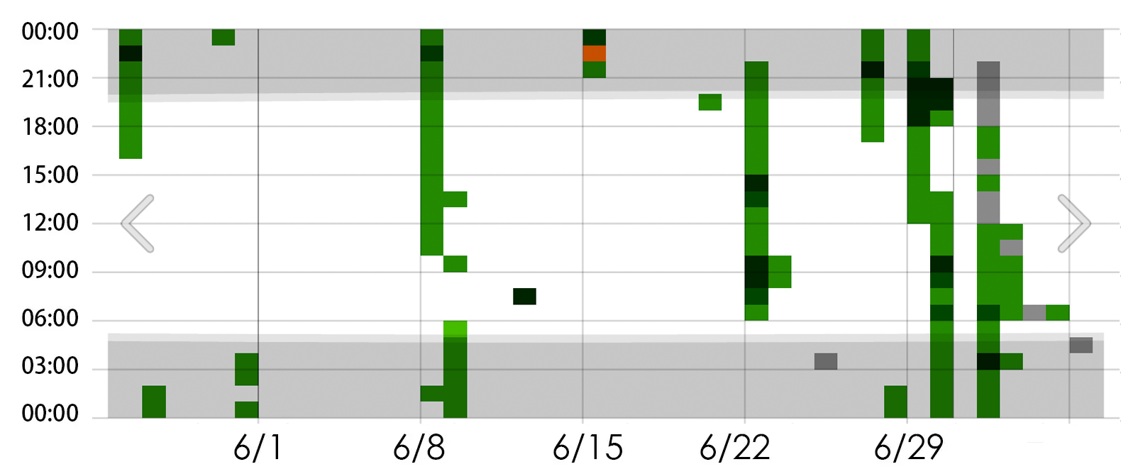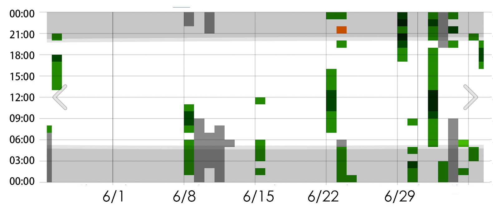 06月的天氣大致可分成上旬與中旬的「沒下雨」,以及下旬的「有下雨」。