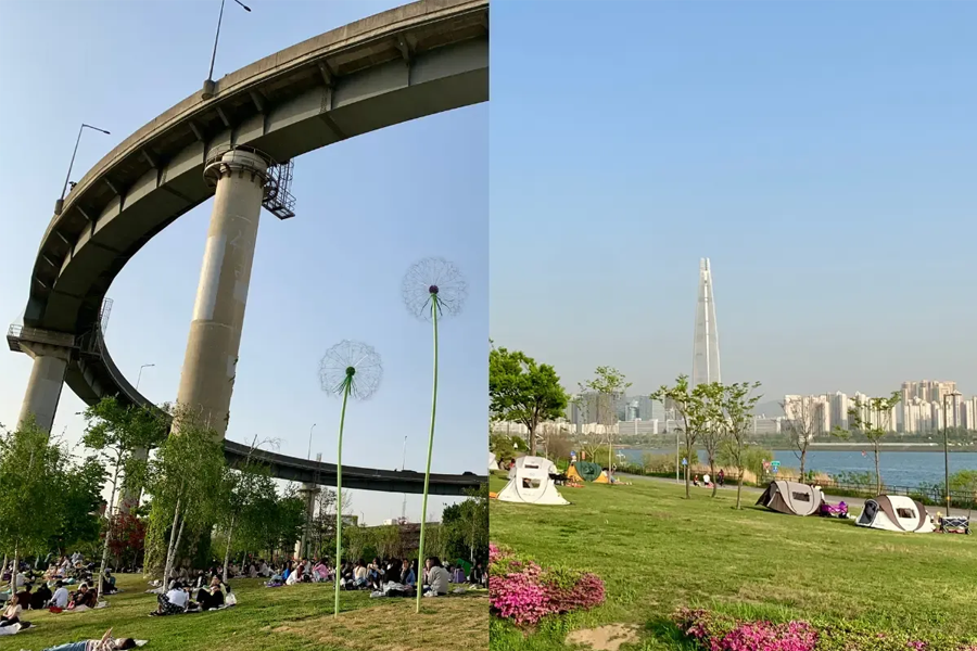趁6月還沒有下雨、也不會太熱、天氣好的時候一定要來漢江公園野餐,各位可以自備炸雞或啤酒在這享受悠閒生活,想打卡的話,記得提前租借野餐道具組喔。
