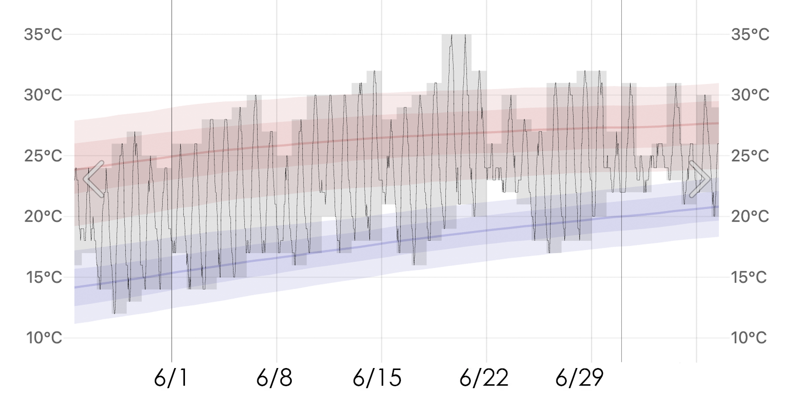 不過要注意的是,最高溫將會從06月下旬突破30度,這時可就真的有點熱了。