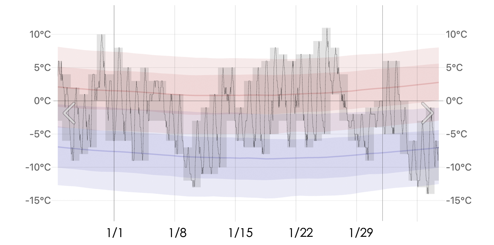 不過01月偶爾也有比較暖活的日子,氣溫略升到零度以上,短暫的回暖期間讓旅客或一般居民能稍稍喘息;但若遇到寒流來襲,溫度達到零下15度的極端低溫也是有可能的。