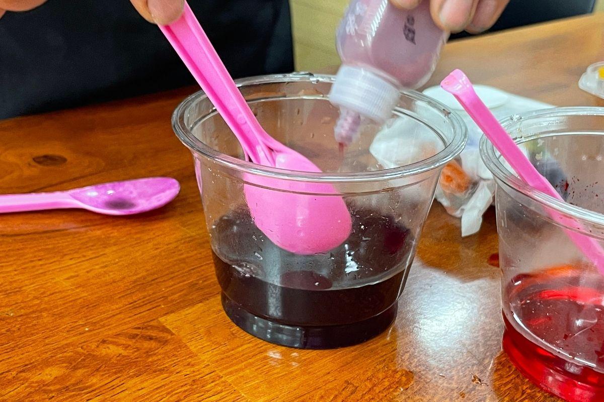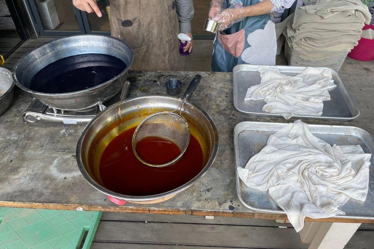 Окрашивание выполняется путем смешивания натуральных пигментов с теплой водой для получения основного цвета. Используемый порошок - это порошок кошенили, сделанный из мелкого измельчения насекомых кошенили. Порошок кошенили также считается популярным натуральным красным красителем.