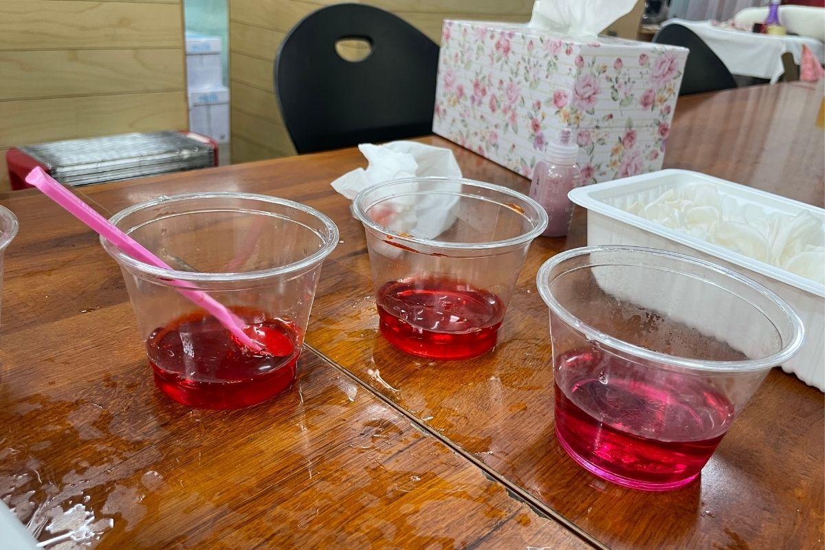 После этого учитель добавил основной цвет в другие стекла, чтобы получить другие цвета.