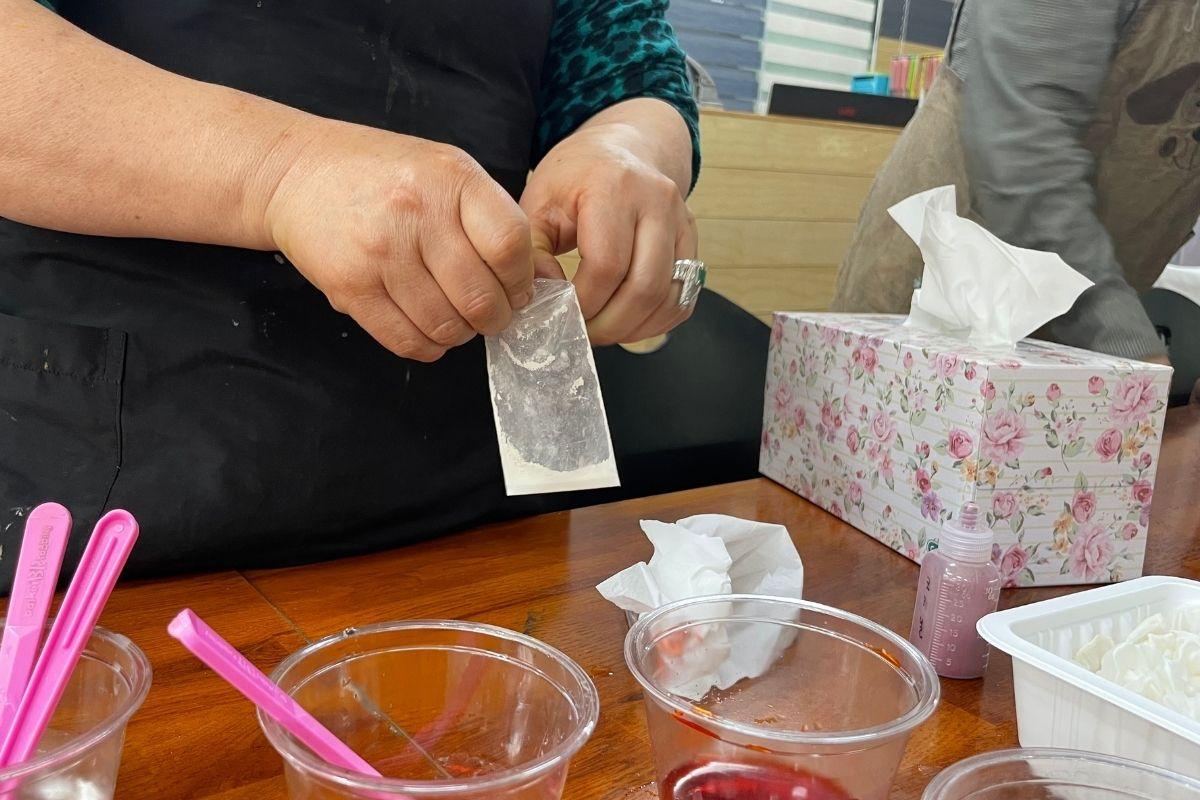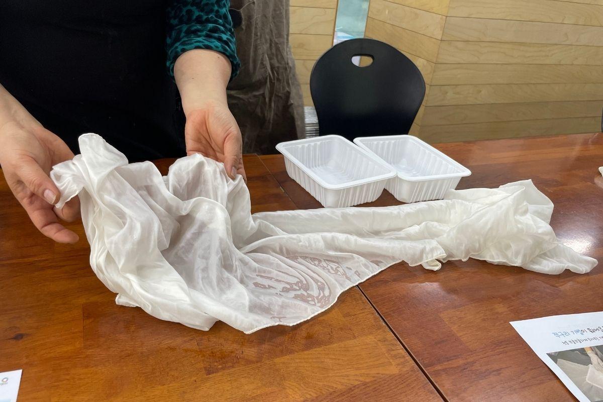 Деятельность, которую мы собираемся попробовать сегодня, это окрашивание натуральных шелковых шарфов, которые подобны шелковым тканям. Документ, объясняющий процесс, написан на корейском языке, однако инструктор говорит по-английски, так что вам не нужно беспокоиться о возможном языковом барьере.