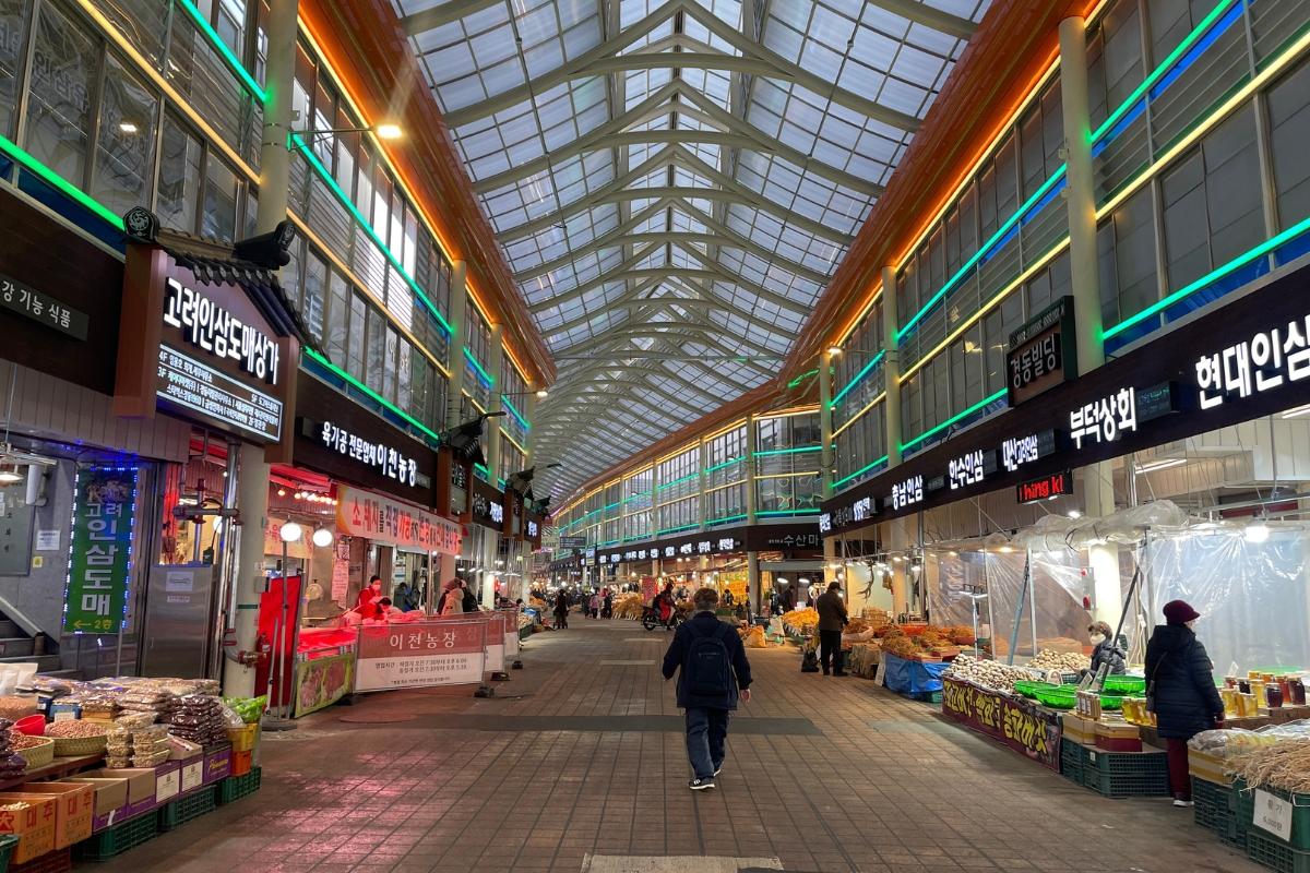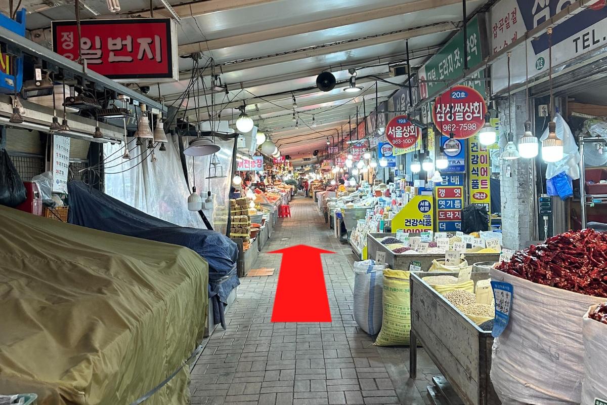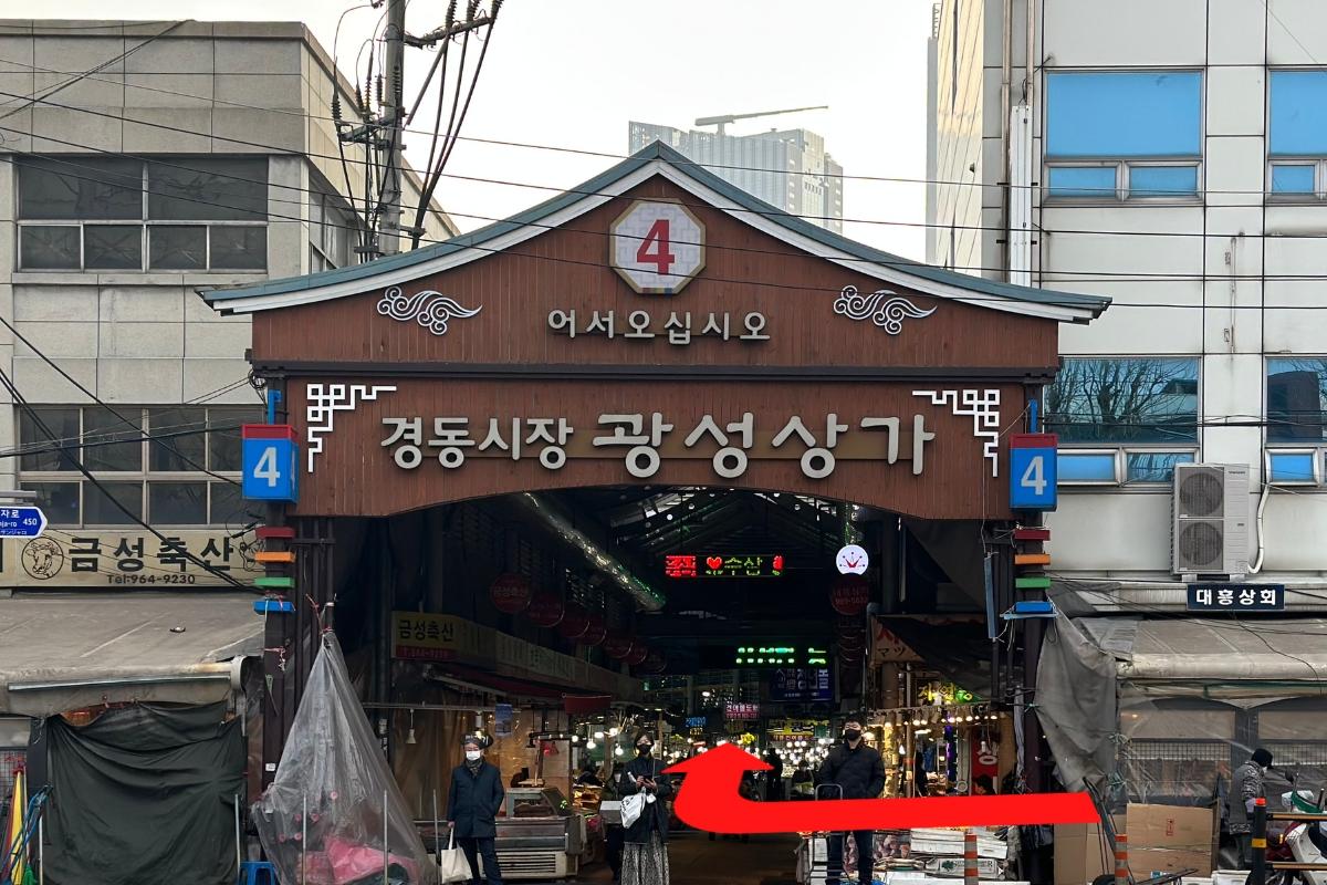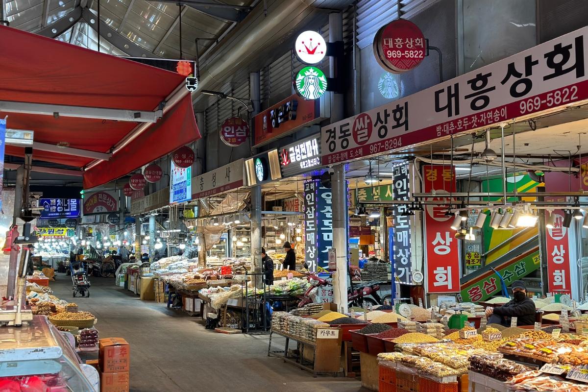 Starbucks Kyungdong 1960 находится ближе всего к станции Джеги-дон, примерно в 500 метрах от выхода 2. Нам даже пришлось пройти через части рынка Кёнгдон! Было интересно увидеть все различные вещи, которые продаются на традиционном рынке.