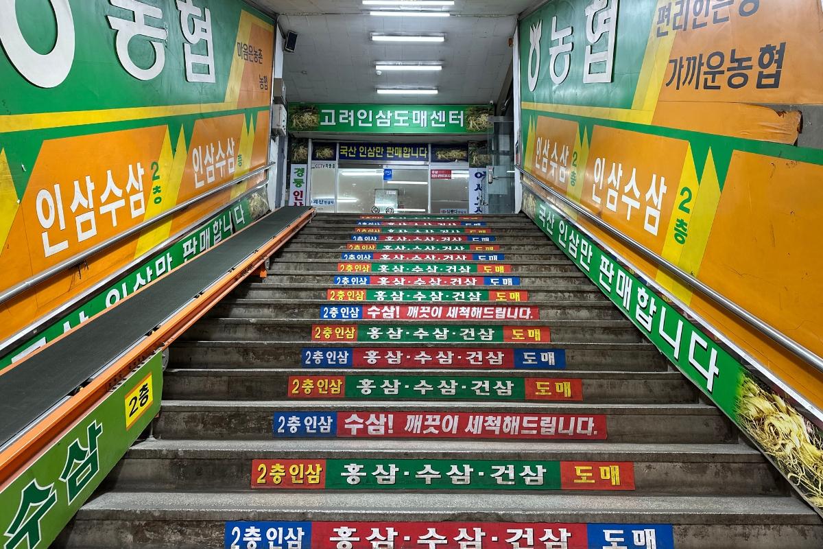 Не позволяйте себя обмануть всеми торговцами, продающими свежую рыбу, зерно и традиционную корейскую медицину - наверху лестницы находится совершенно новый Starbucks!