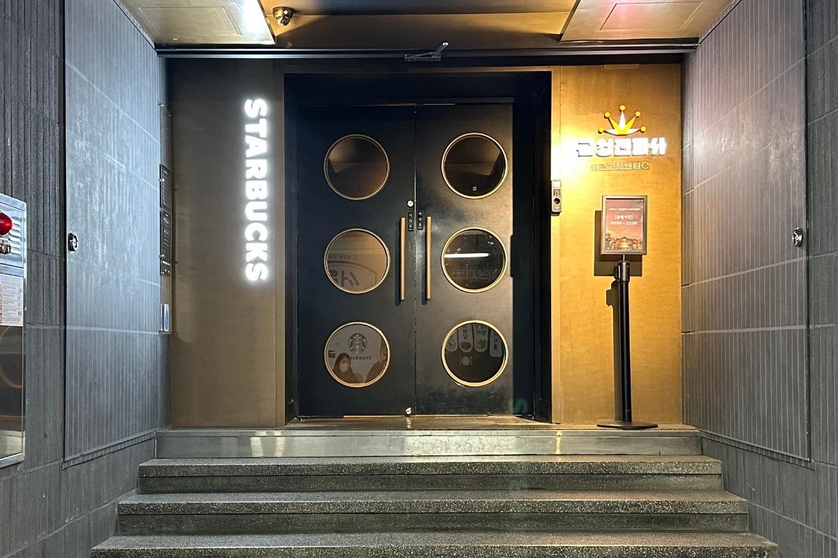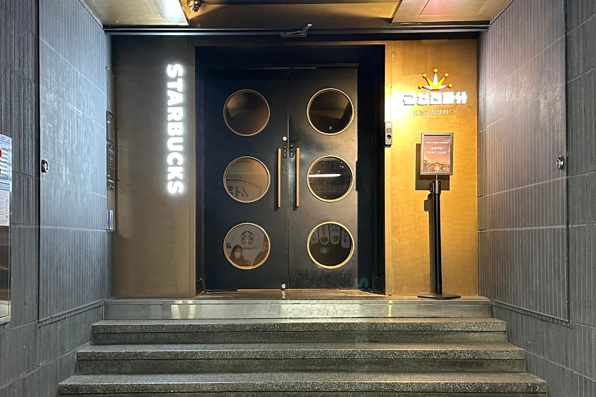 Вы увидите дверь Starbucks Kyungdong 1960. Вы прибыли!