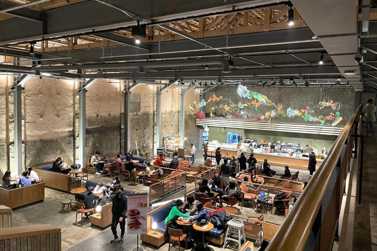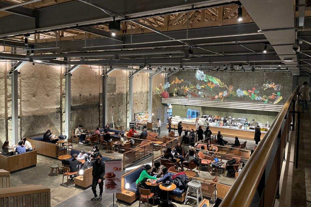 Дизайн 1960-х годов призван сохранить дух театра и отдать дань наследию и традициям рынка Кёндонг! За каждый проданный товар это заведение Starbucks пожертвует 300 KRW (~0,25 доллара США) Корейской комиссии по корпоративному партнерству (KCCP). Средства пойдут на поддержку рынка Кёндонг! Это новое заведение стало чрезвычайно популярным среди корейцев в социальных сетях, поэтому мы сами посетили его, чтобы увидеть, в чем все это дело!
