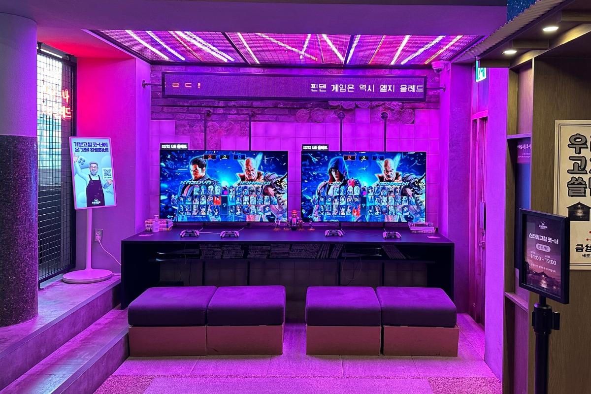 Когда вы впервые заходите, вам придется подняться еще по одной небольшой лестнице, где вы увидите большую проекцию на стене, а затем большую зону с самыми красивыми украшениями! Здесь много мест для фотосъемки, игровая станция и еще одна лестница, ведущая к комнате побега (11:00-19:00)!