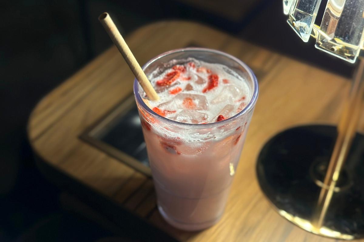 Розовый напиток со свежими клубникой Starbucks Refreshers был добавлен в меню корейских Starbucks в августе 2022 года и стал довольно популярным в Корее! То, что изначально началось как позиция секретного меню в США, стало официальной позицией меню в 2017 году! Этот напиток освежающий, слегка молочный и сладкий, и, кажется, становится вкуснее во время клубничного сезона!