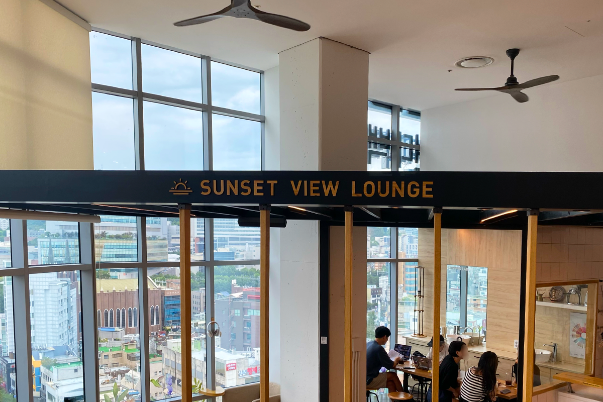 Места на открытой террасе предлагают прямой вид на коммерческий район Синчон и кампус Университета Ёнсе