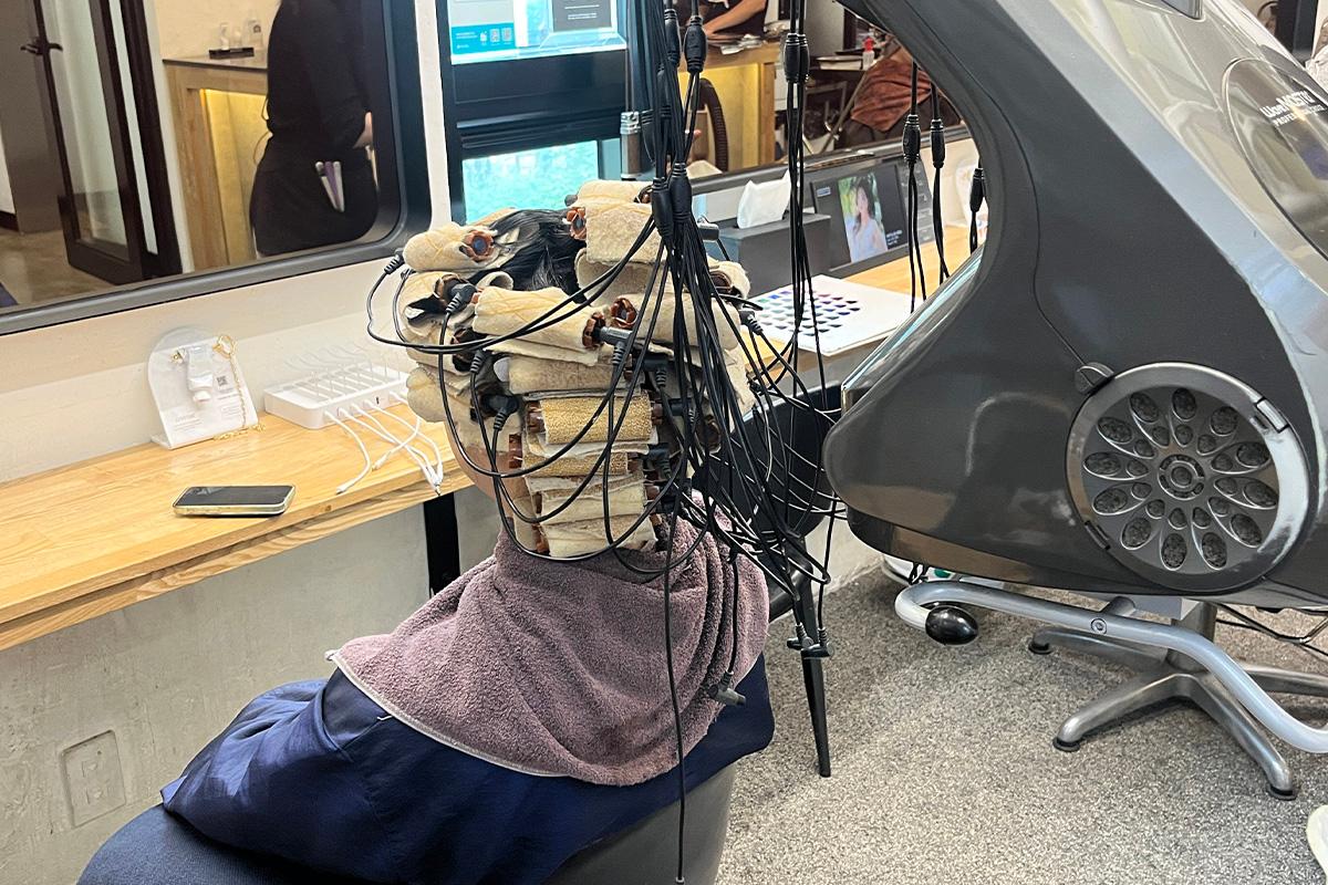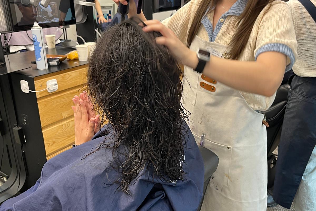 Сначала они тщательно проверили состояние моих волос и решили, какое лечение нужно провести. В целом, волосы казались тяжелыми, поэтому мы планировали подстричь их и сделать завивку, чтобы они выглядели аккуратно.