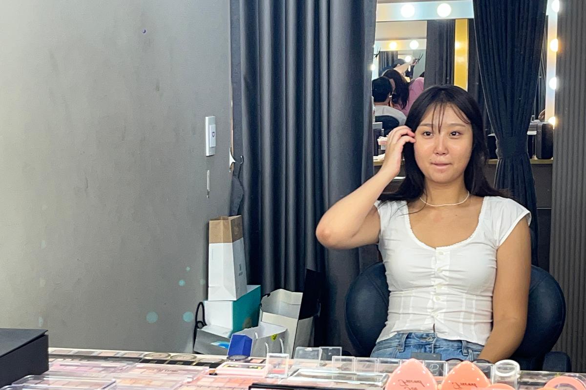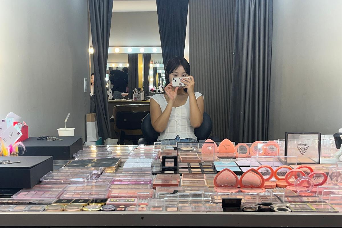 Сначала я вошел в комнату для макияжа. Комната была частной, и как только я вошел, я увидел широкий ассортимент представленной косметики.