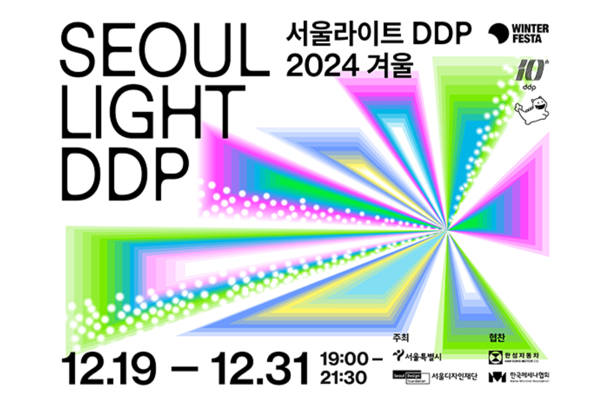 Мероприятие 'Seoul Light' в DDP проводится с 19 по 31 декабря 2024 года и называется '5 Cheers!: Эстафета надежды и поддержки'. 31-го числа состоится обратный отсчет до 2025 года!