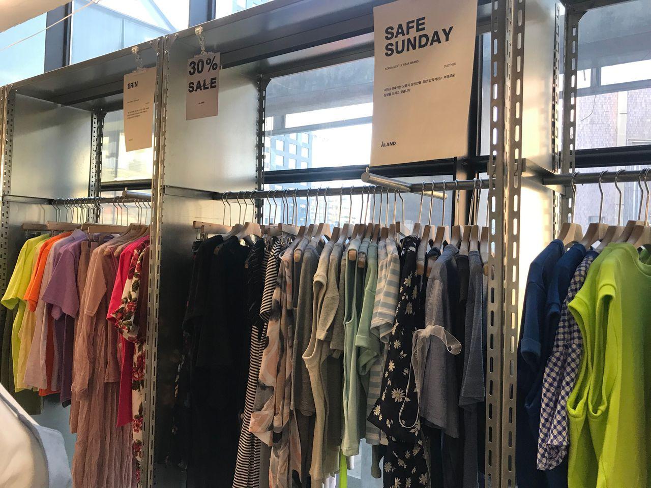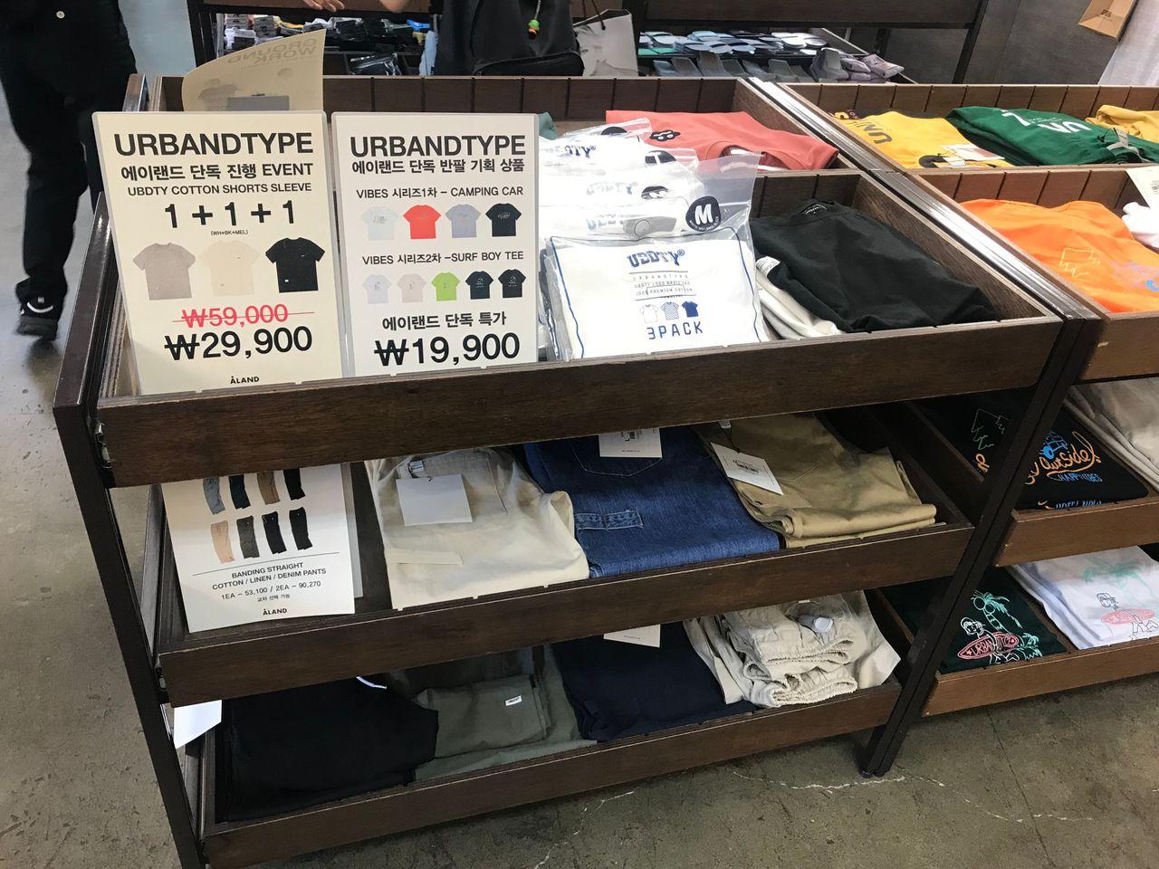 Посмотрите на их цену! Много одежды в A LAND продается по скидке! Если вы не можете найти свою любимую одежду на торговой улице Синчон, тогда приходите в A LAND.