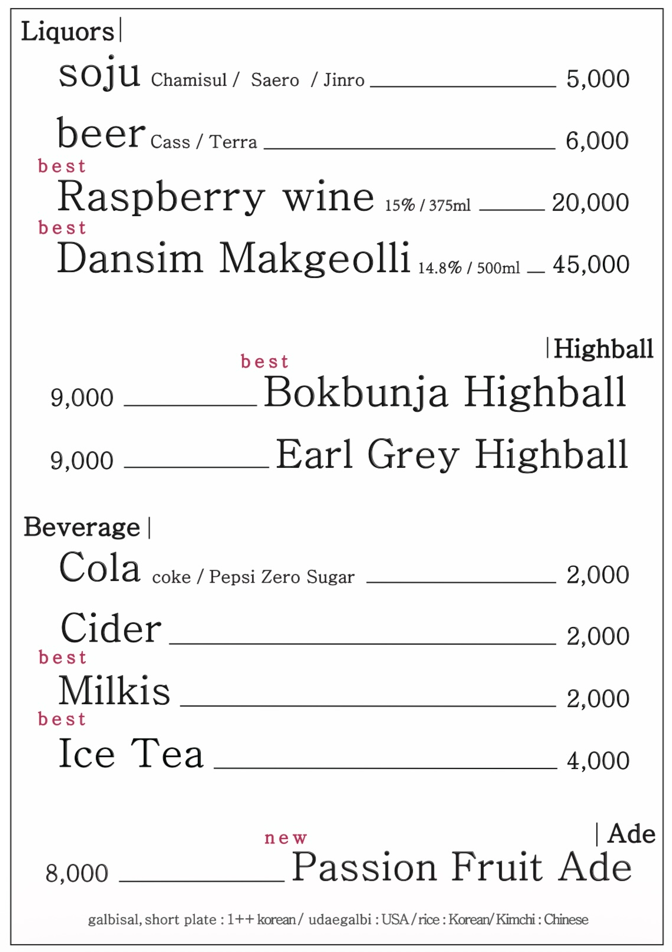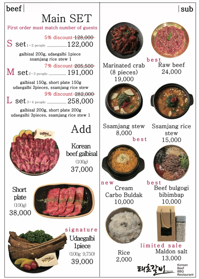 Почему мы это рекомендуемСвежие корейские говяжьи короткие ребра и премиальные отрубы, приготовленные на углях для более насыщенного вкуса.Расслабьтесь и наслаждайтесь, пока персонал готовит мясо за вас.Наслаждайтесь вкусными гарнирами и другими блюдами из меню.Чистое, хорошо обслуживаемое помещение с дружелюбным персоналом.Всего в 2 минутах ходьбы от станции Hongik Univ.Меню* По состоянию на ноябрь 2025 года.