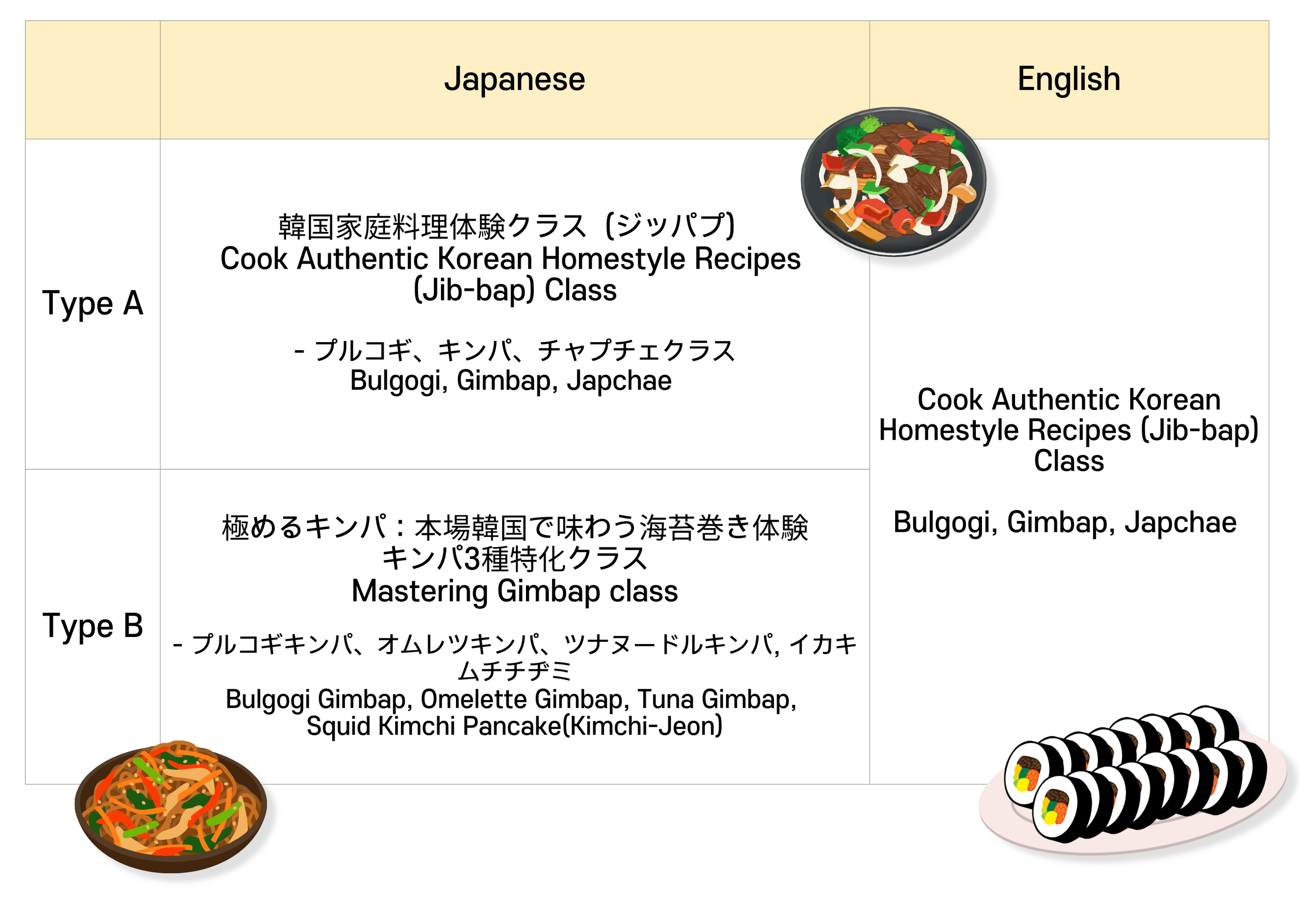 🔥根據開課日期,教學語言與菜單內容會有所不同,請在預約前務必確認以下資訊。