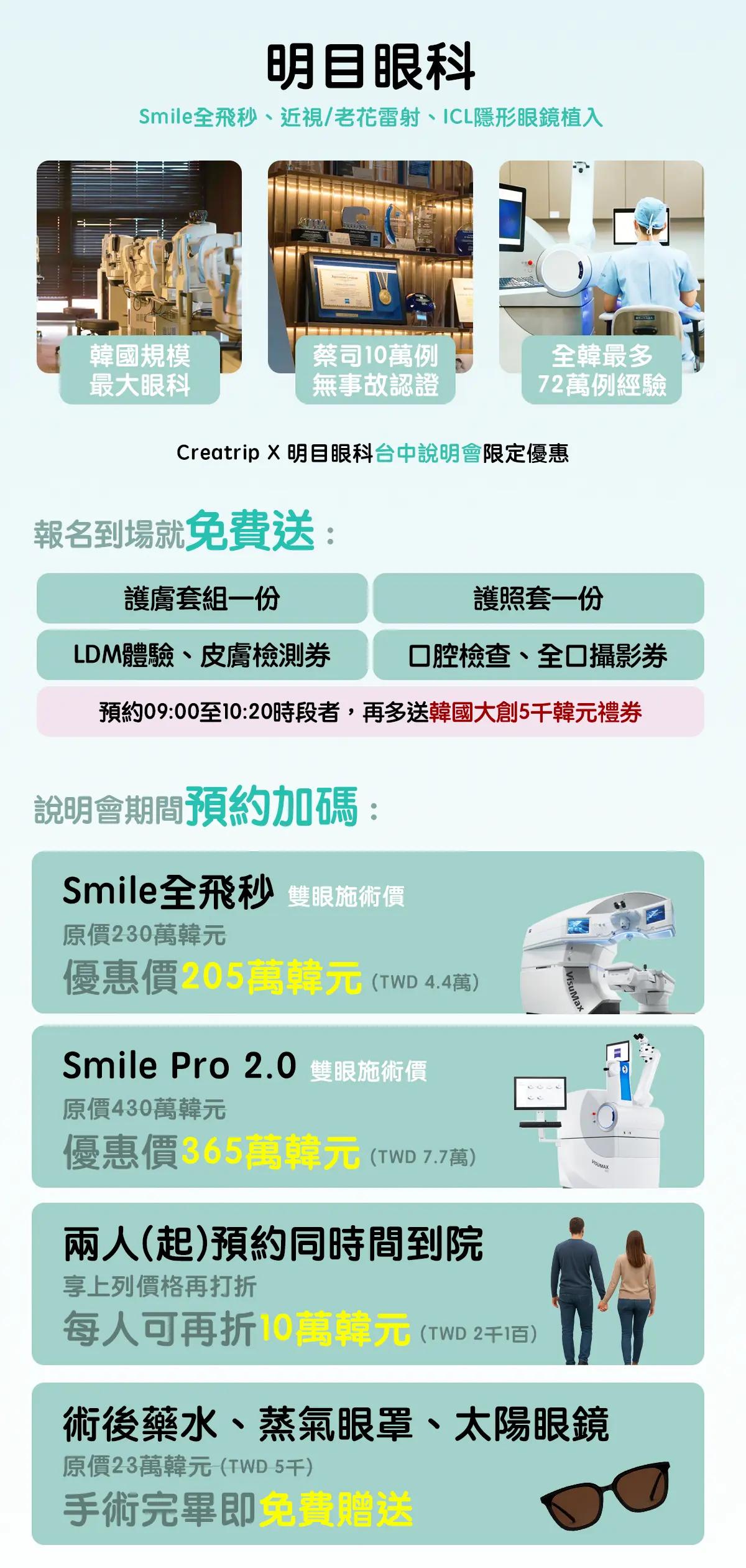 此頁面僅為 (韓) 밝은눈안과 提供之說明會資訊,無涉及 (韓) 크리에이트립 Inc. 與之相關在台業務。