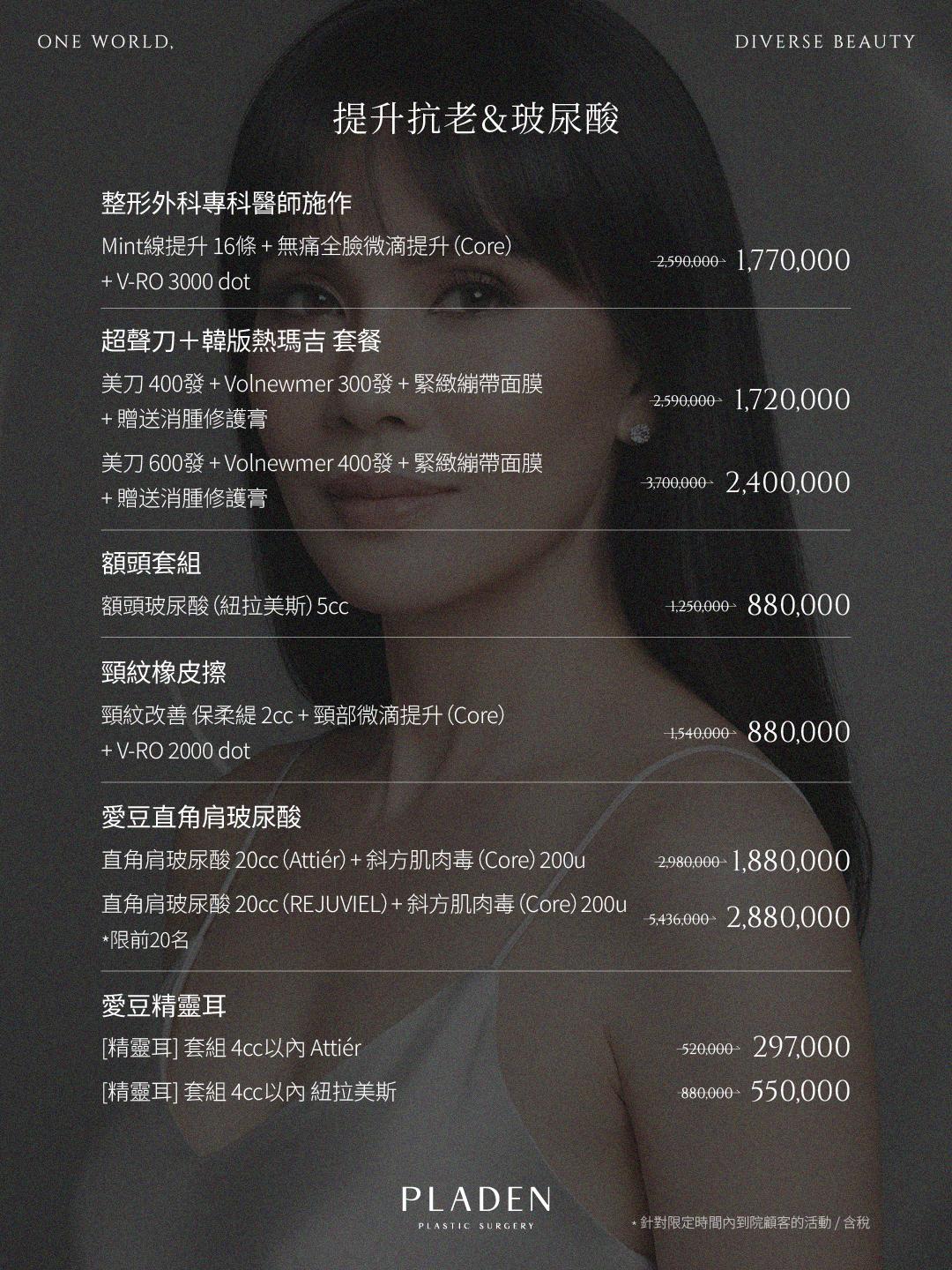 玻尿酸填充(肩膀、耳朵、臉部、嘴唇) | |
