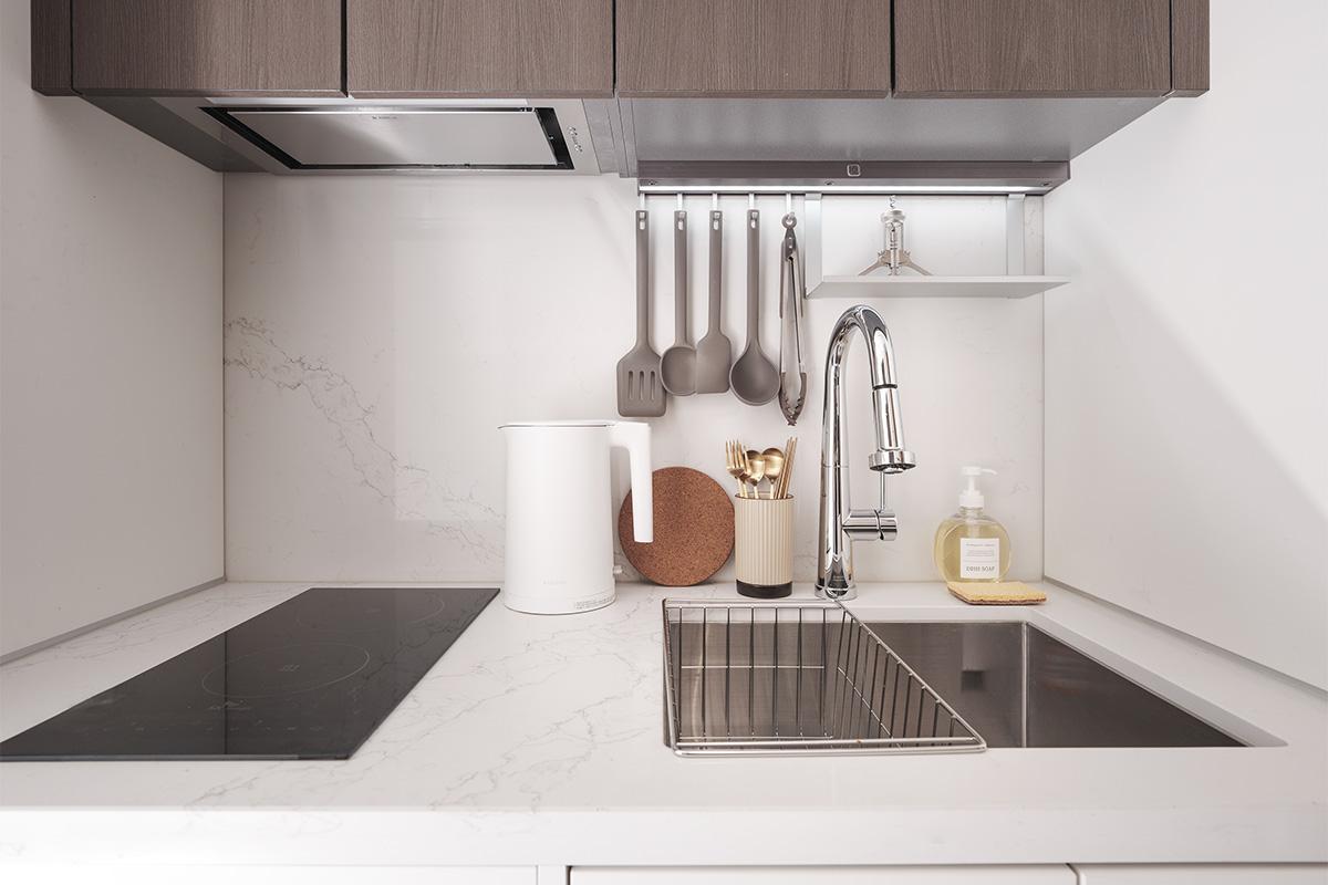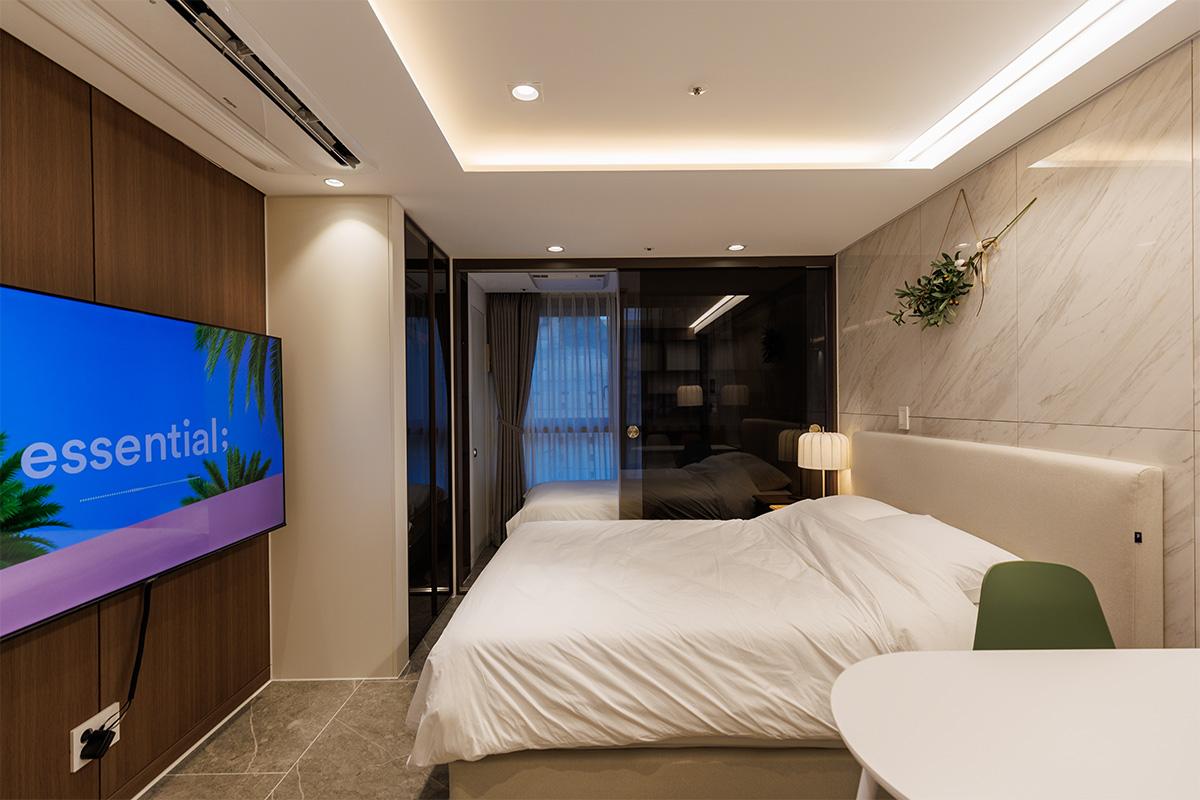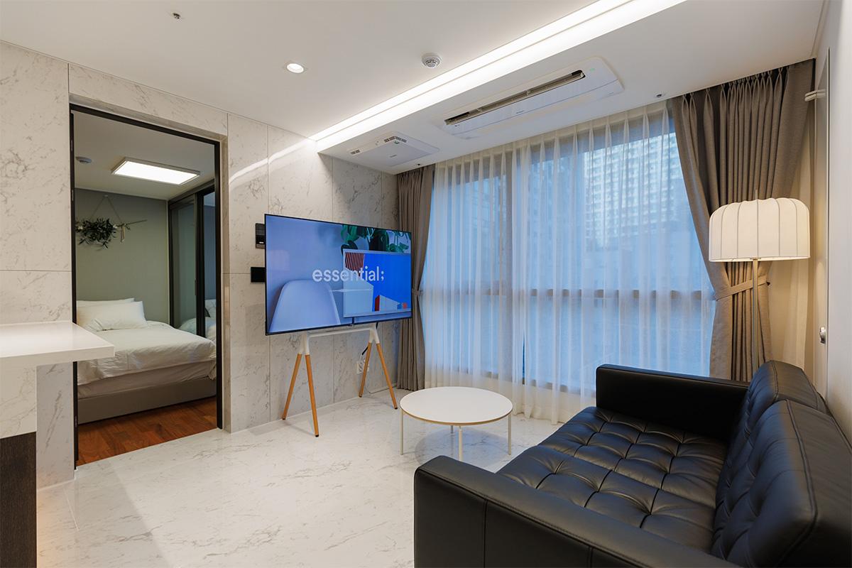 所有客房皆為全配套住宅,備有廚房、洗衣機、曬衣架、全尺寸冰箱、大型智慧電視、微波爐、空調、床、桌子、收納家具、烹飪器具等生活所需的各種家電與家具,不論是短期停留或長期住宿,都能像在自己家一樣享受舒適的生活。