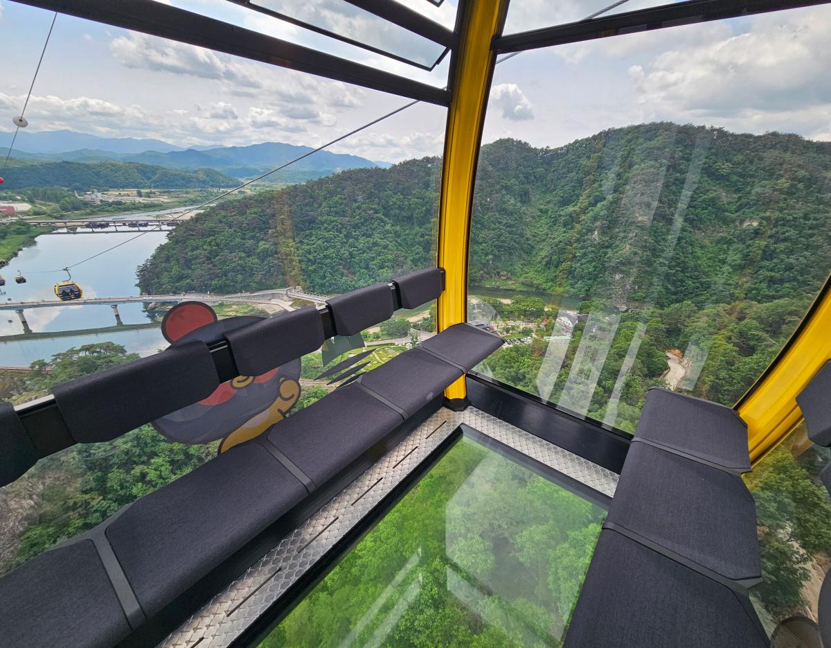 - 鹽山纜車的地板採用透明設計,可以一眼看到下方的風景。欣賞소금산的美景,能夠快速又方便地抵達山頂。