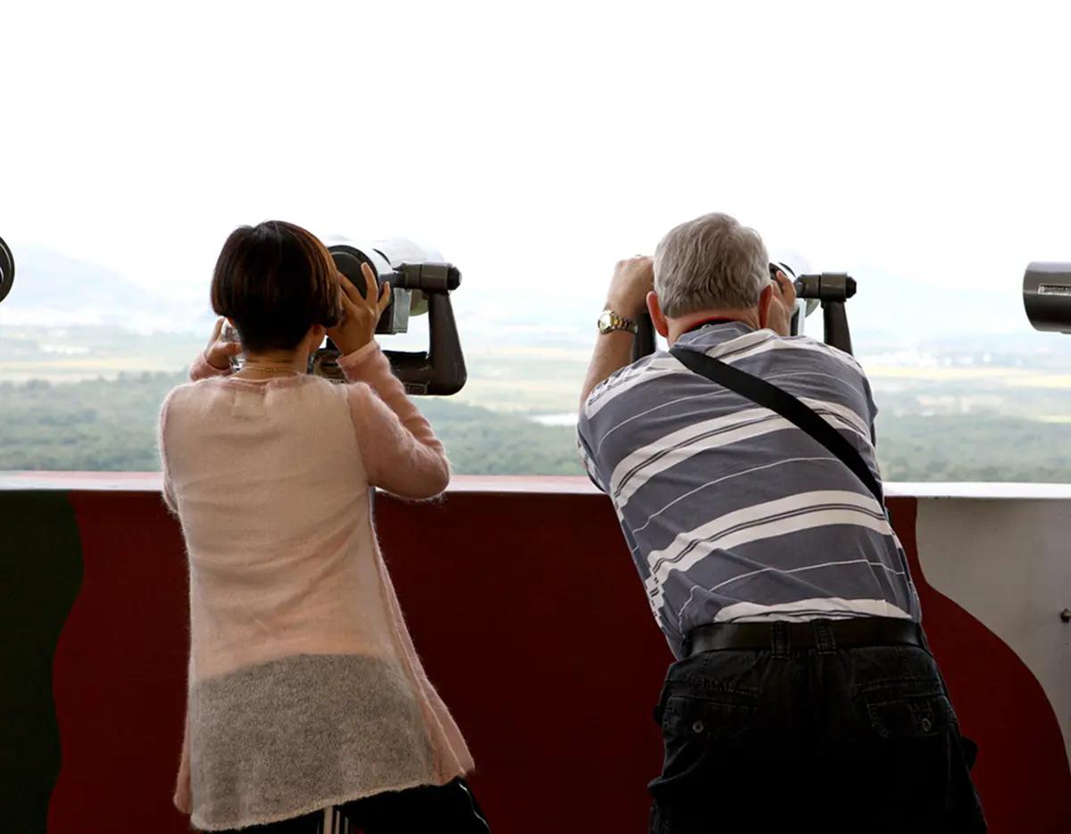 這是南側最北端的展望台,可以眺望北韓的生活。透過數十台望遠鏡,可以看到非武裝地帶、開城的松鶴山、金日成銅像,甚至開城工業園區。