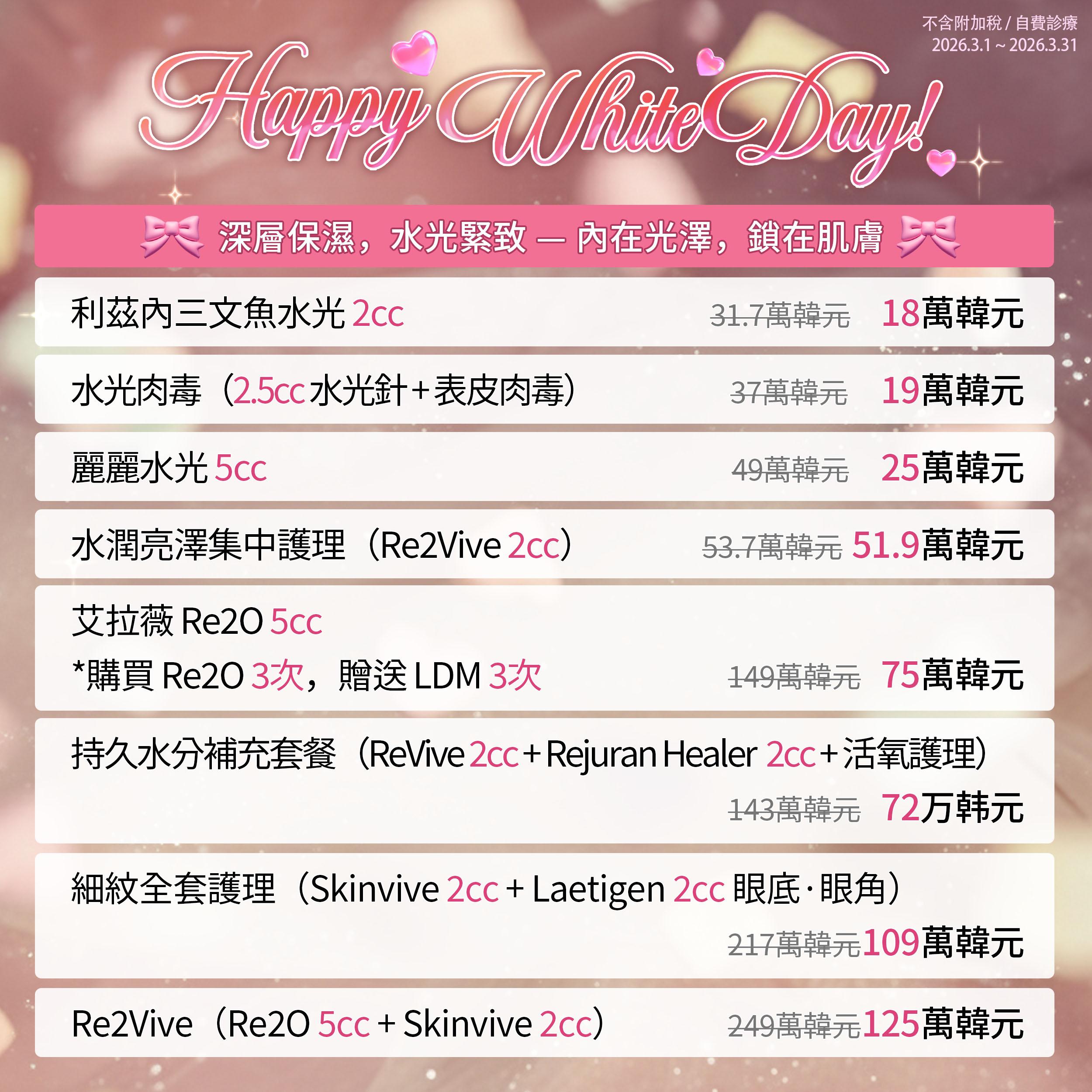 施術注意事項 | 可能會有腫脹、瘀青。避開三溫暖、游泳池、蒸氣浴、飲酒、抽菸及過度運動一週,個別差異可能出現過敏反應。 |
