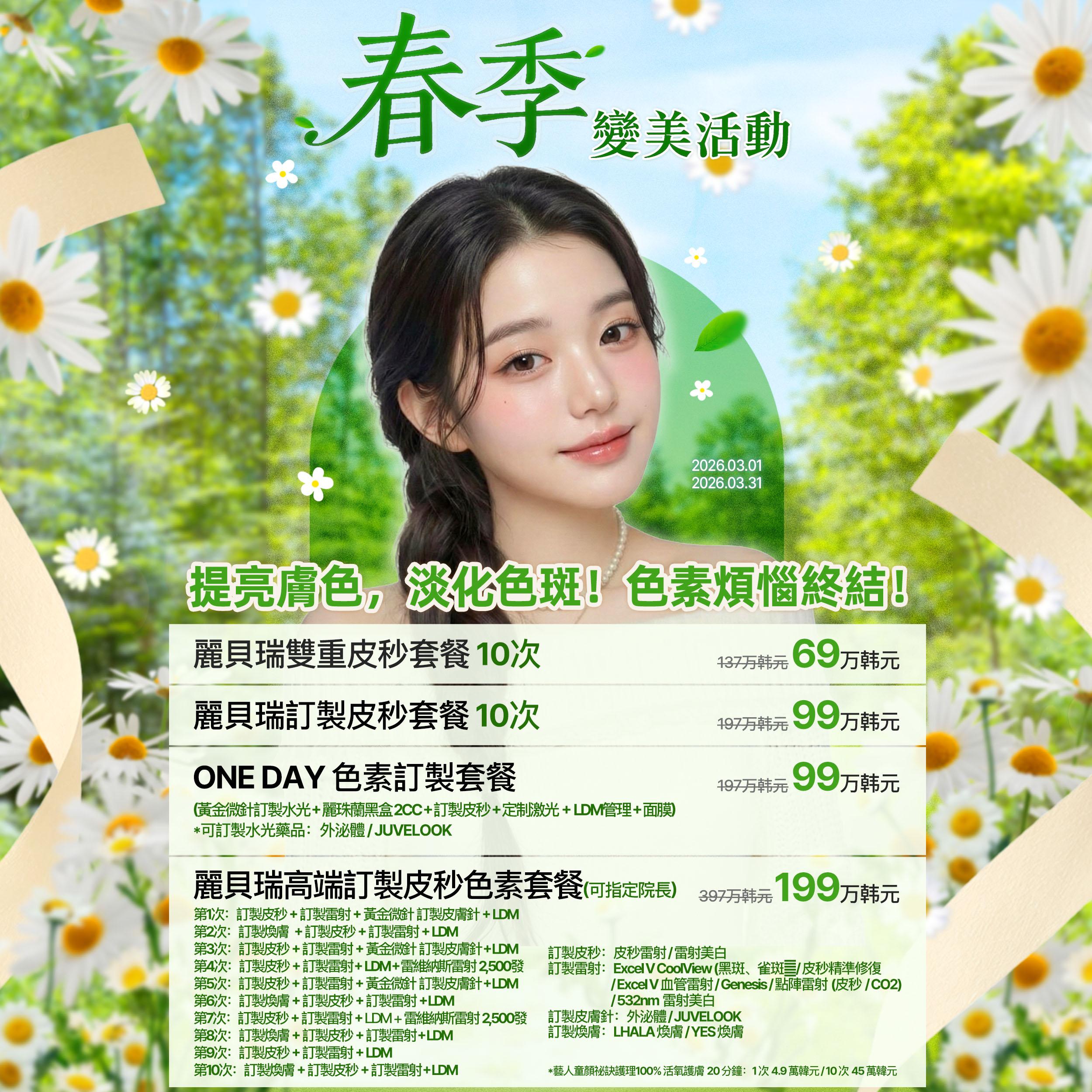 一日色素套餐(客製化淨膚雷射+客製化雷射+Potenza客製化Skin Booster+麗珠蘭2cc+LDM 12分鐘) | |