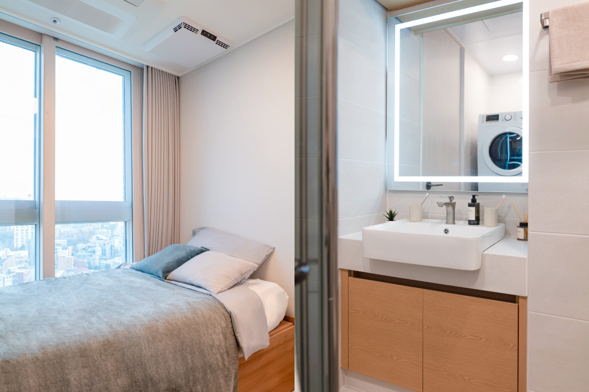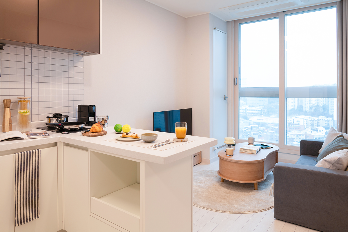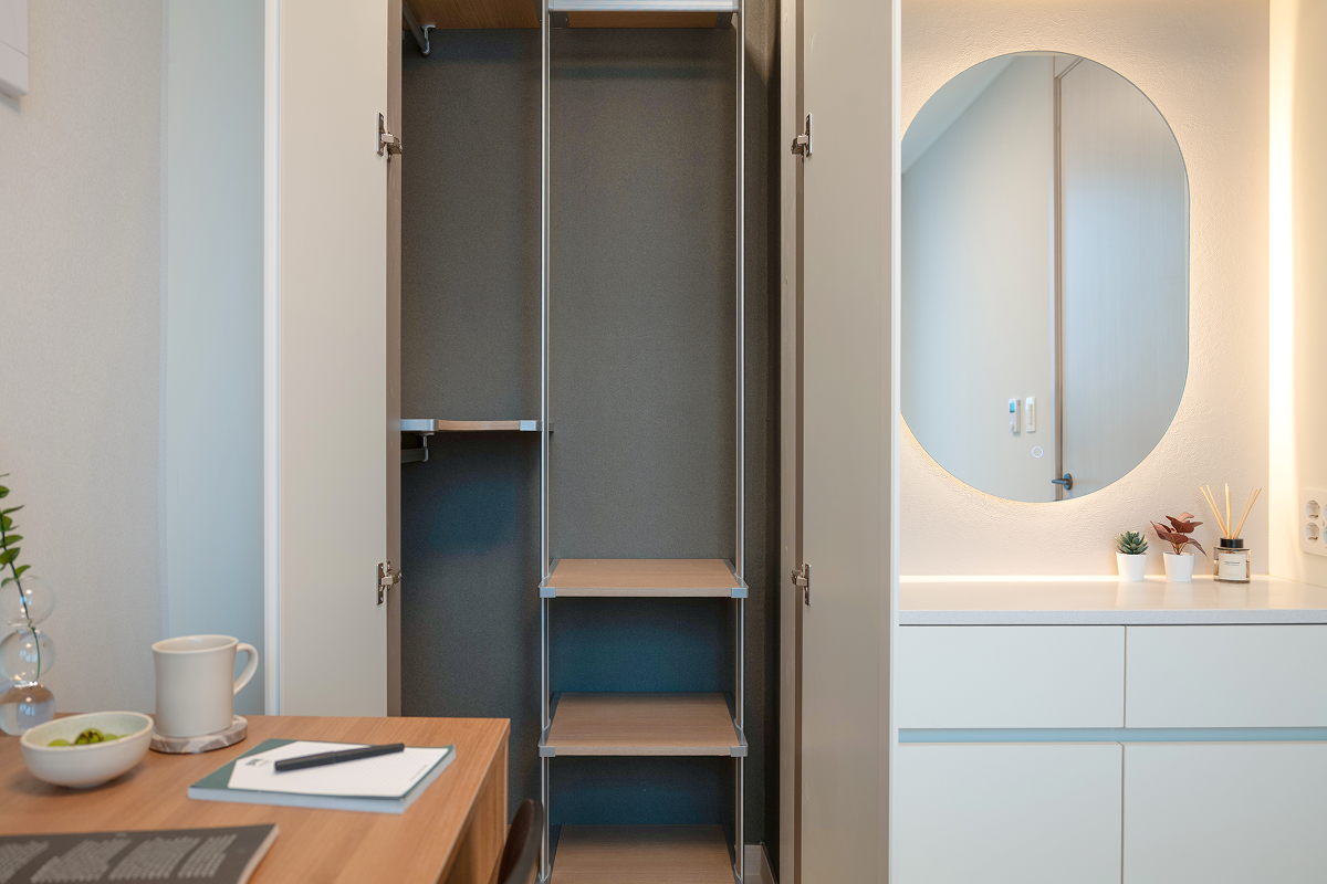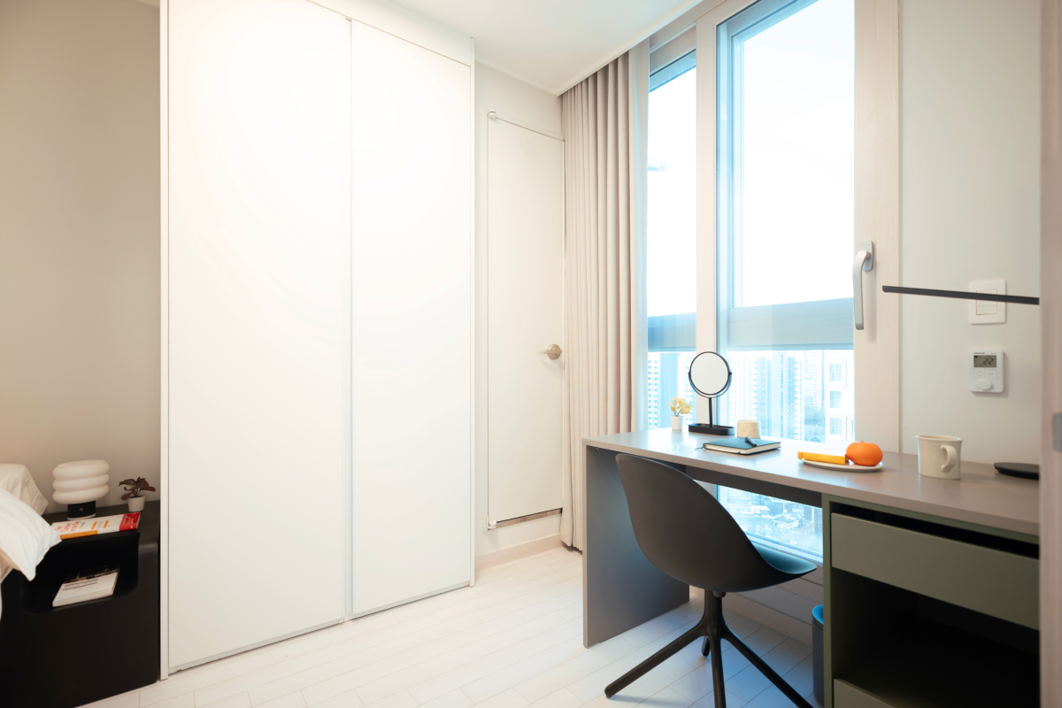 以基本家電與傢俱齊全的全配式(full-furnished)格局,入住即可生活。配有飯店等級牀鋪、收納空間、冰箱、洗脫烘一體機等主要設備,也很適合長期居住。依房型不同,廚房、浴室等部分設施會包含在房內或採共用空間方式使用,房型配置各有差異,可依個人偏好與預算選擇。